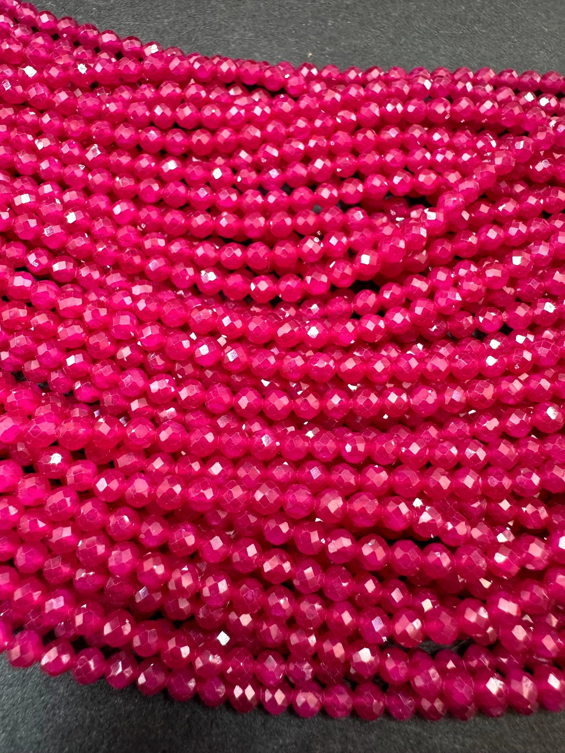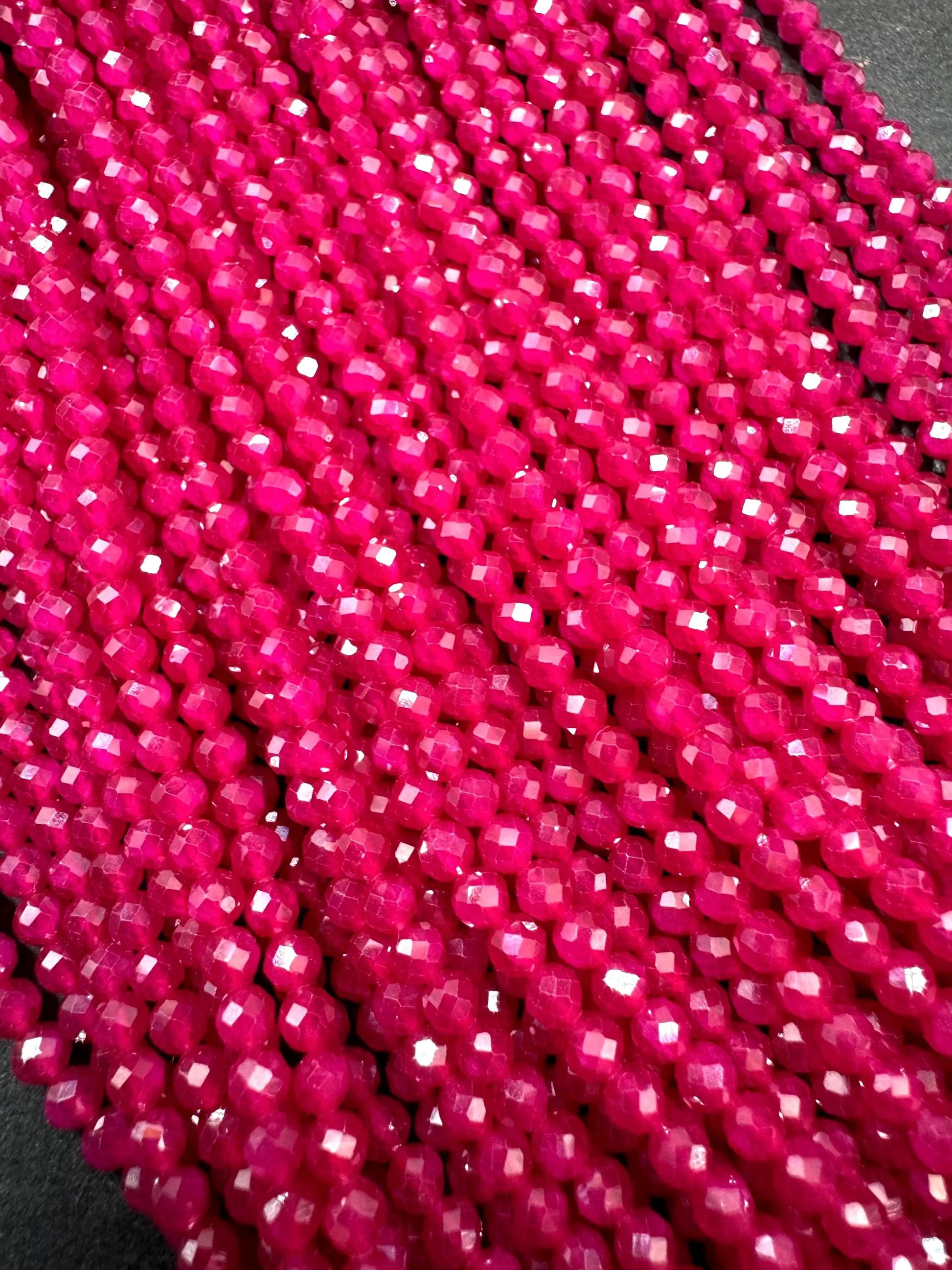 Natural Red Ruby AAA Grade. 2mm Faceted Round Shape. Excellent Quality. Natural Red Ruby Gemstone Bead. Full Strand 15.5”