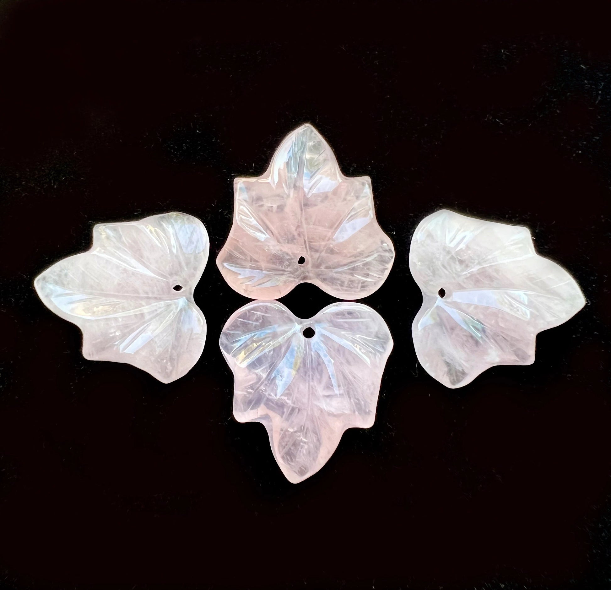 Natural Rose Quartz Pendant Hand Carved Maple Leaf Shape 24mm Gorgeous Natural Pink Color Handmade Earring Loose Bead Loose Pendant quartz