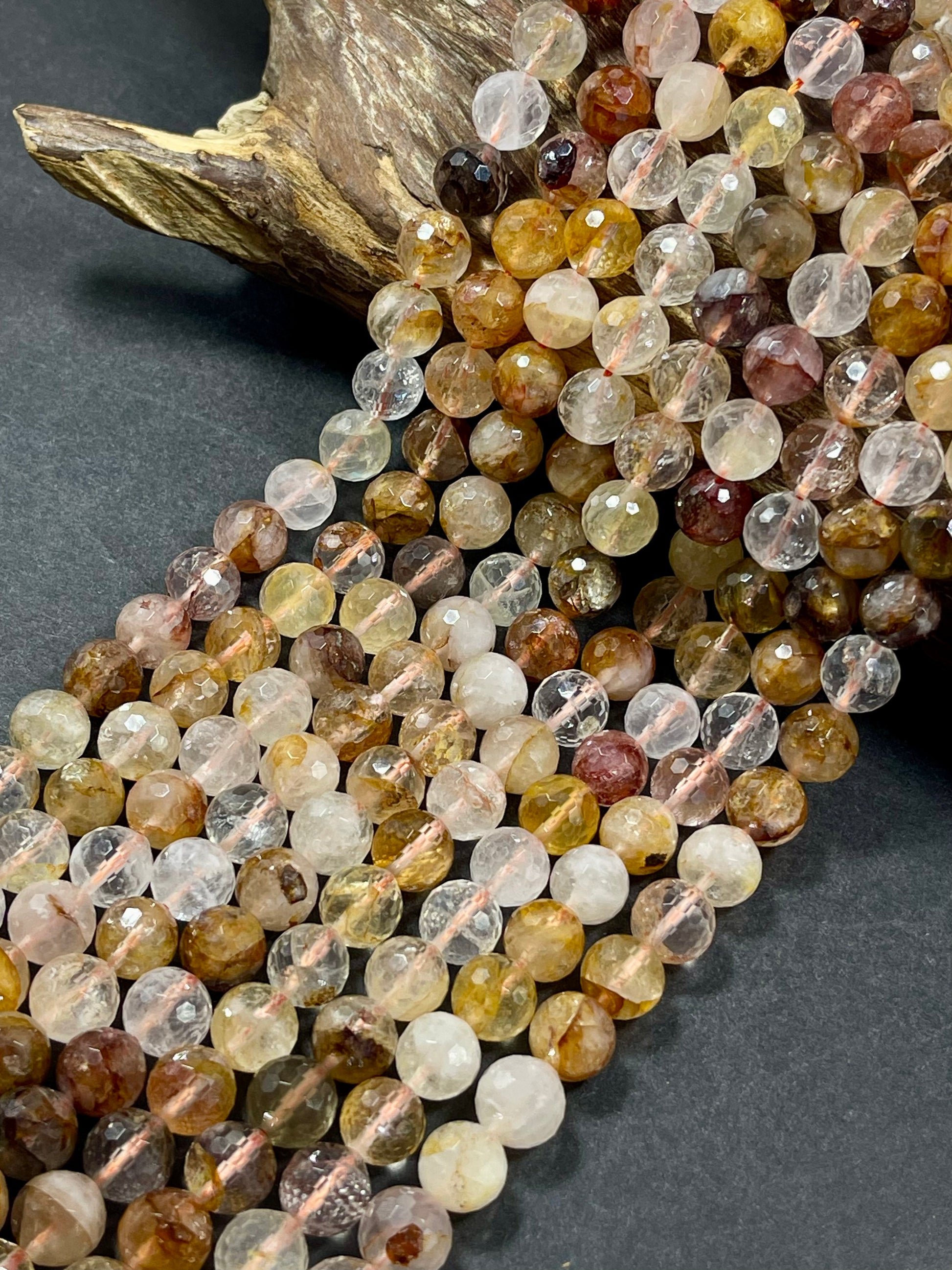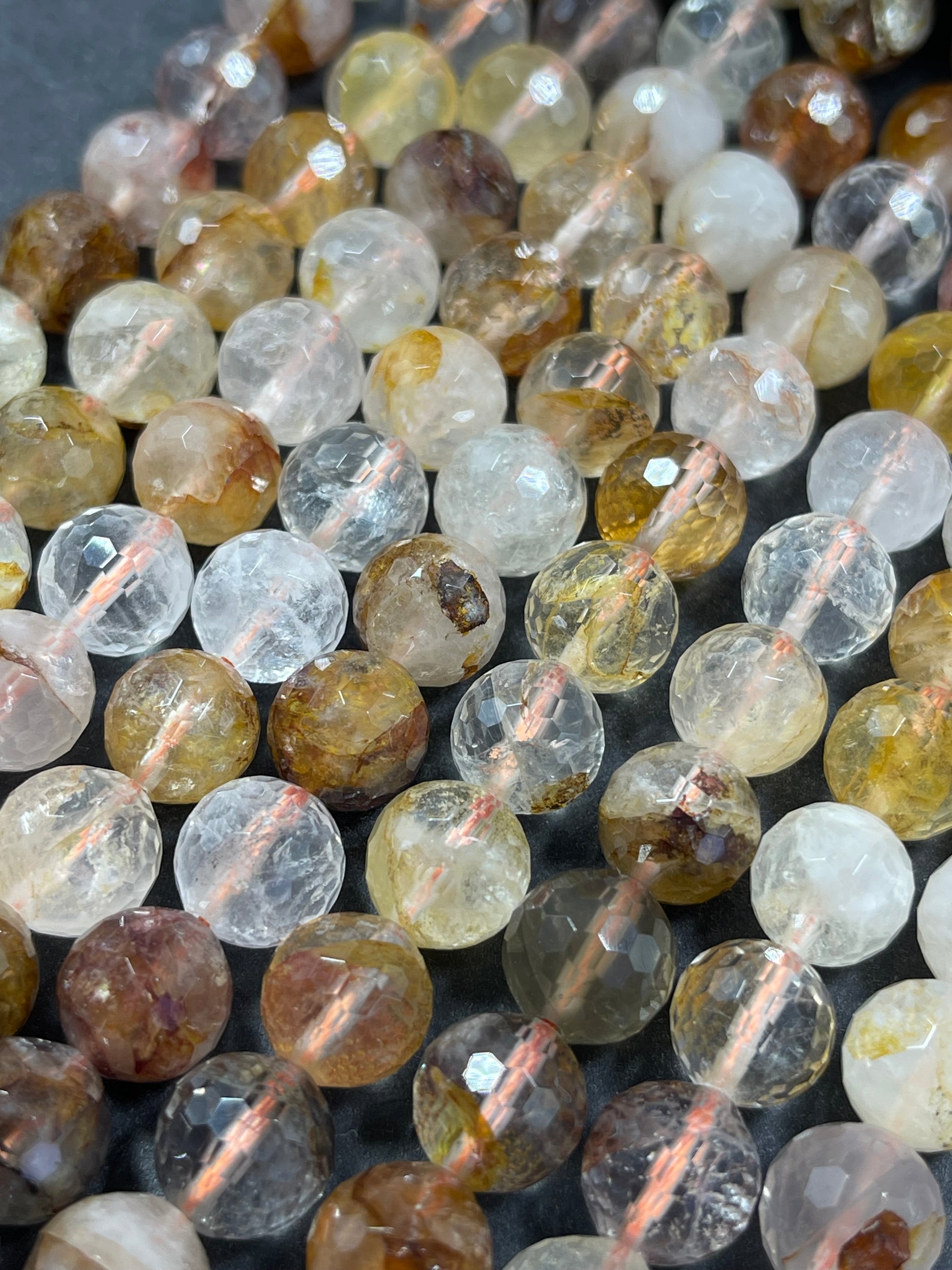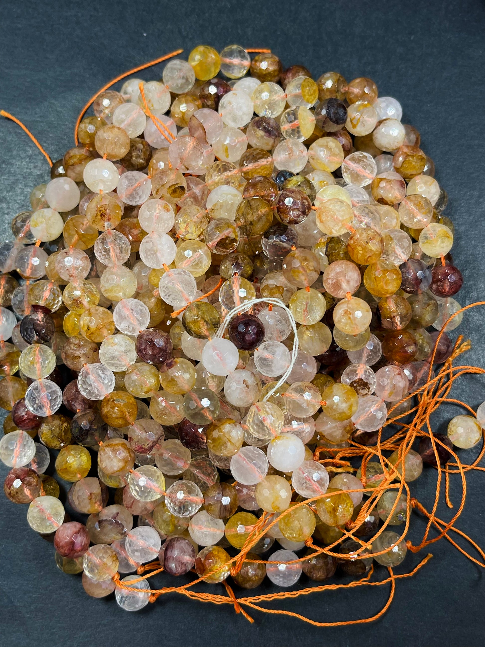 Natural Rutilated Golden Healer Quartz Gemstone Bead Faceted 6mm 8mm 10mm Round Bead, Beautiful Golden Yellow Clear Quartz Bead 15.5" Strand