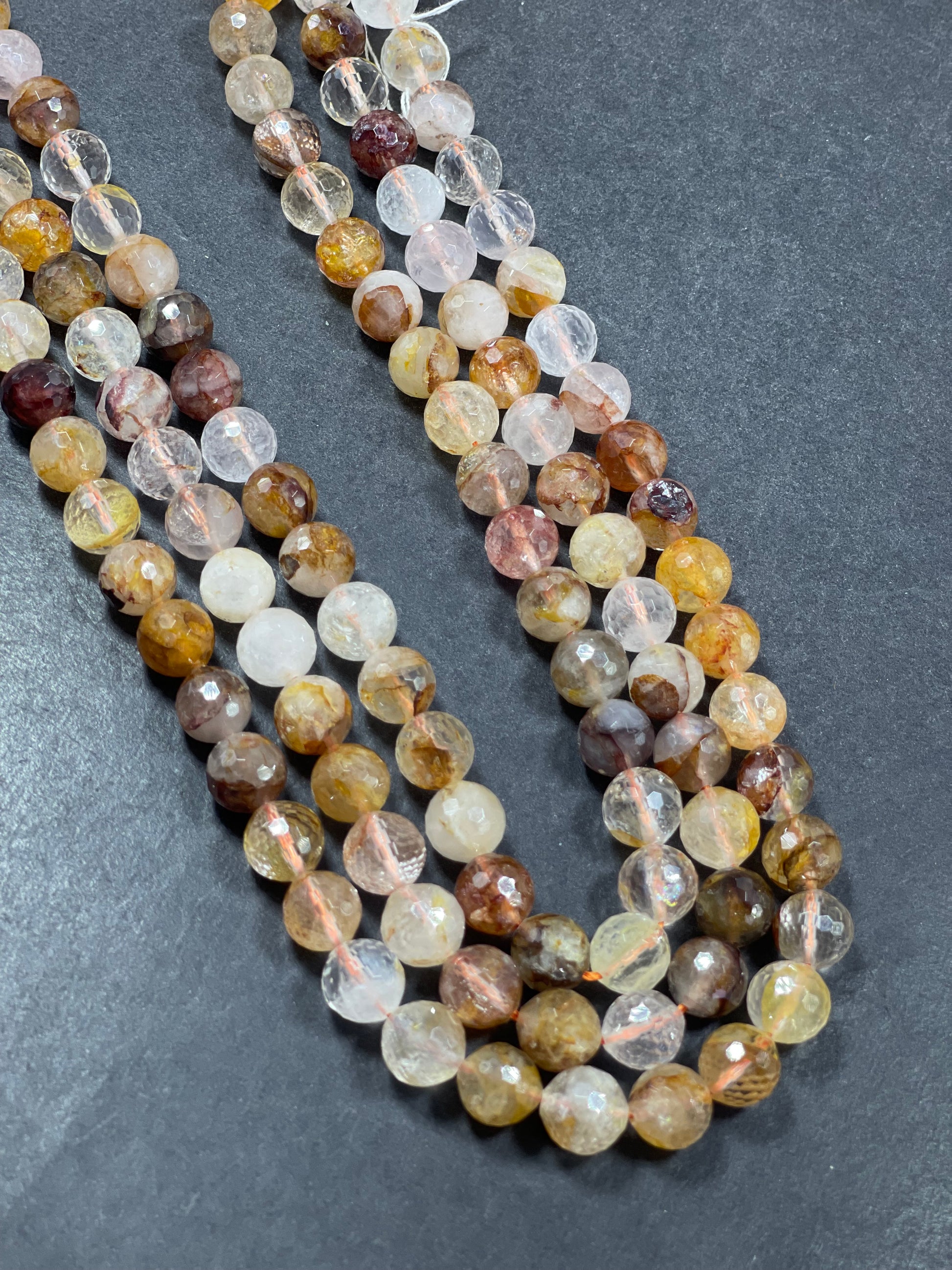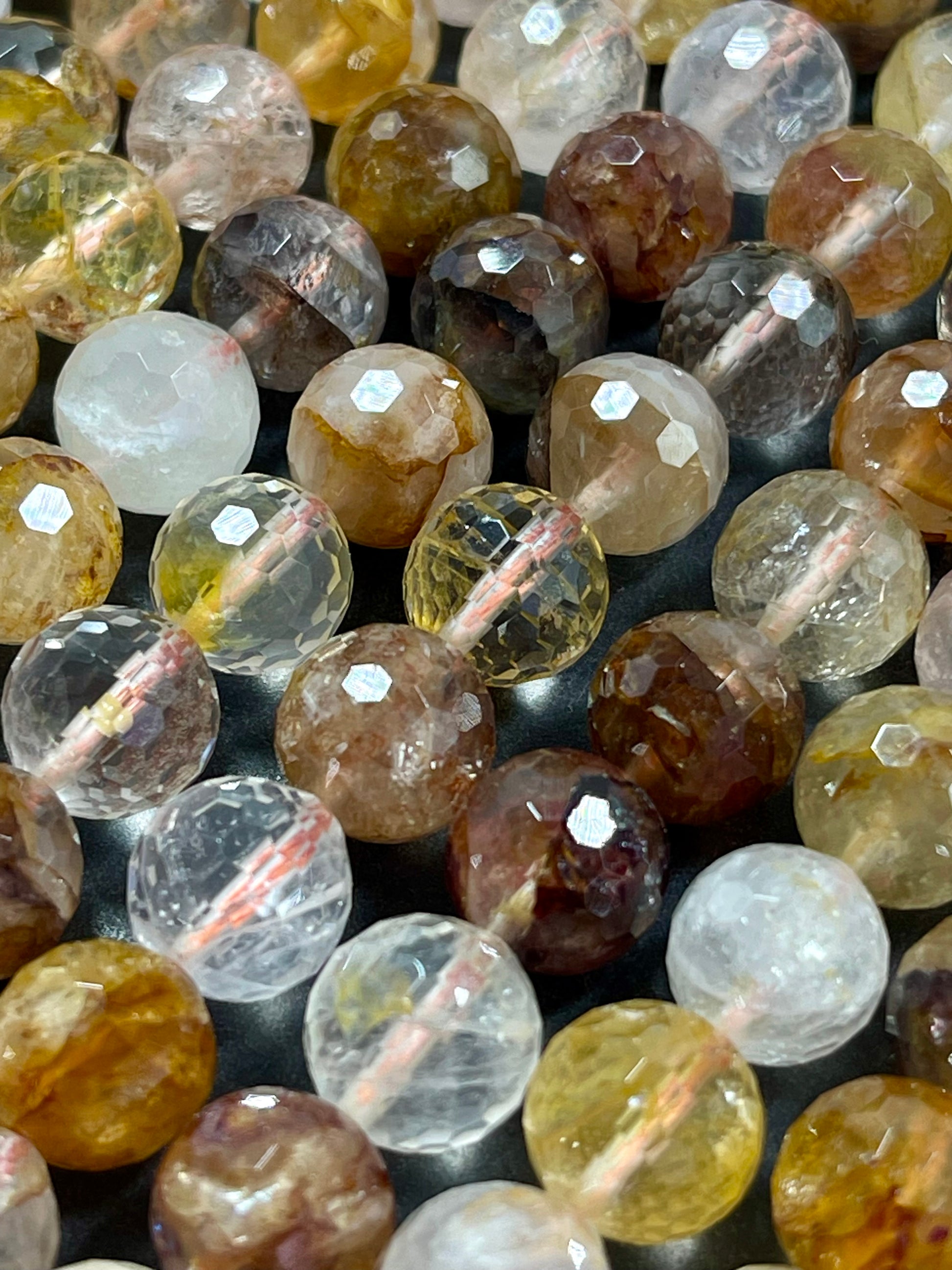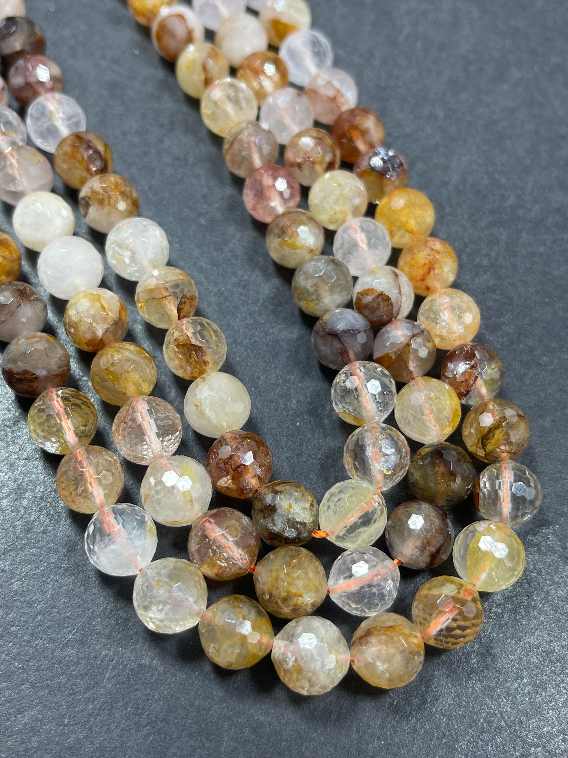 Natural Rutilated Golden Healer Quartz Gemstone Bead Faceted 6mm 8mm 10mm Round Bead, Beautiful Golden Yellow Clear Quartz Bead 15.5" Strand