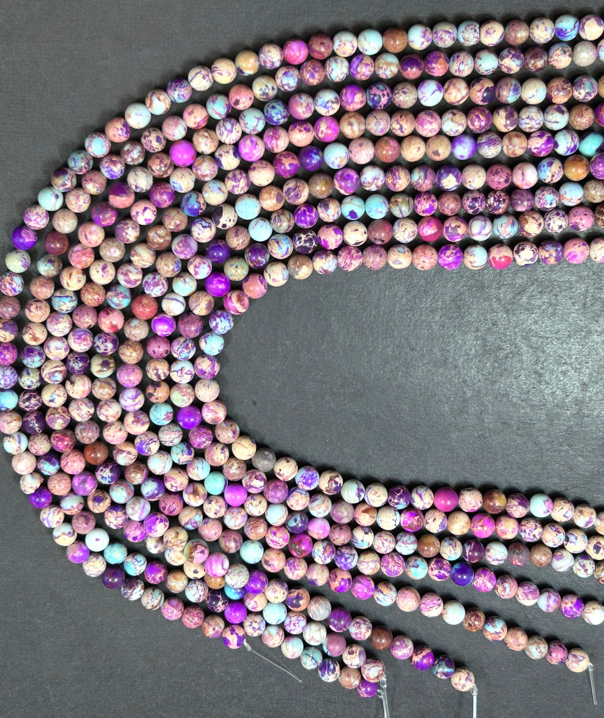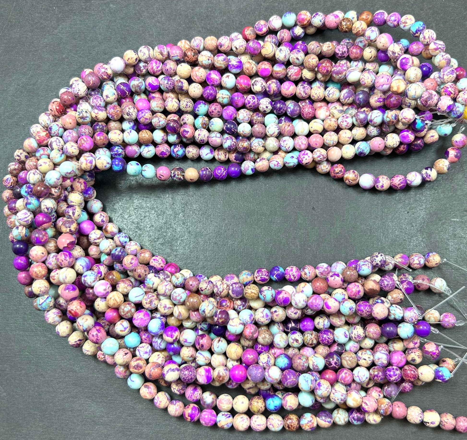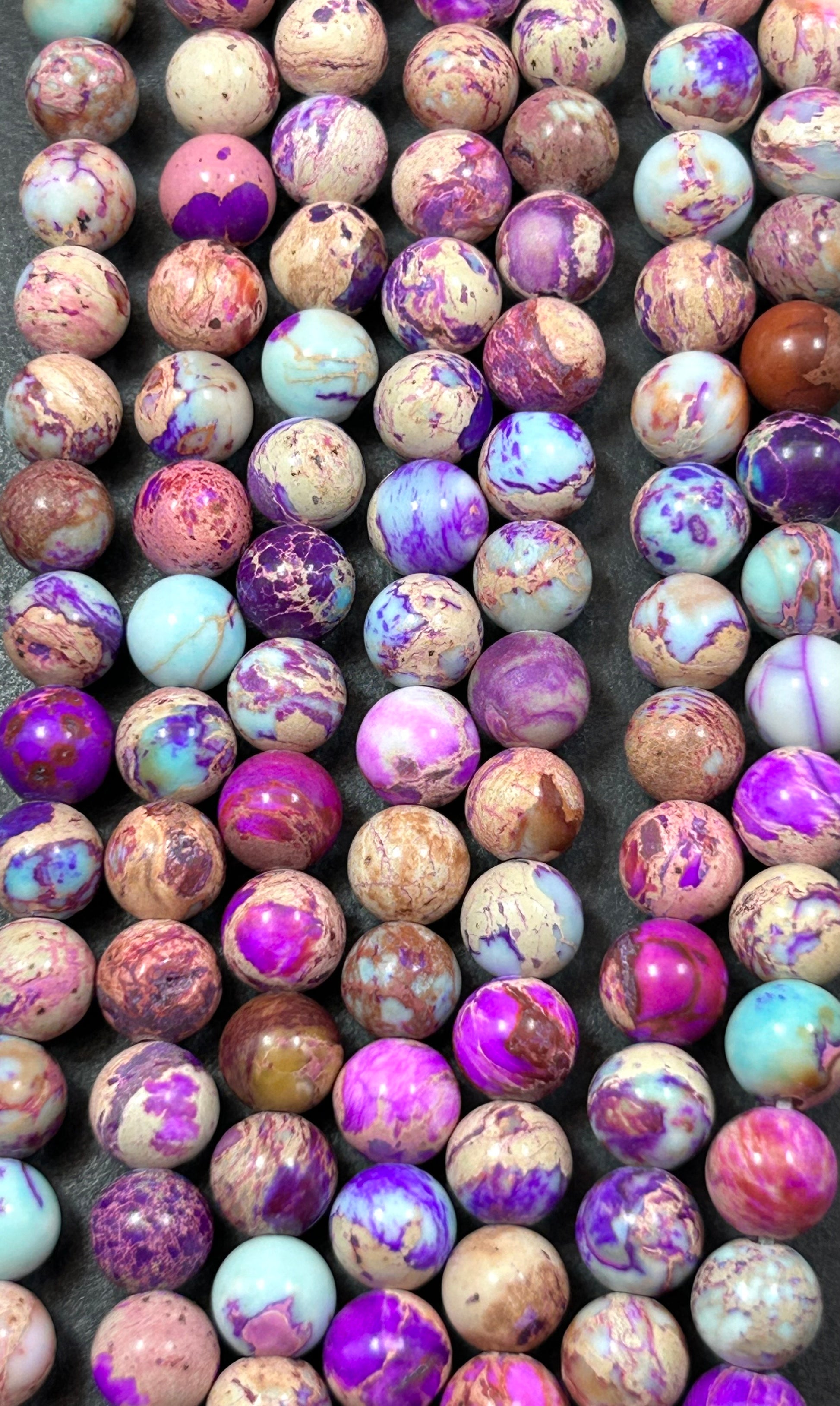 Natural Sea Sediment Jasper Gemstone Bead 6mm 8mm 10mm Round Beads Beautiful Purple Blue Beige Color Imperial Jasper Beads Full Strand 15.5"