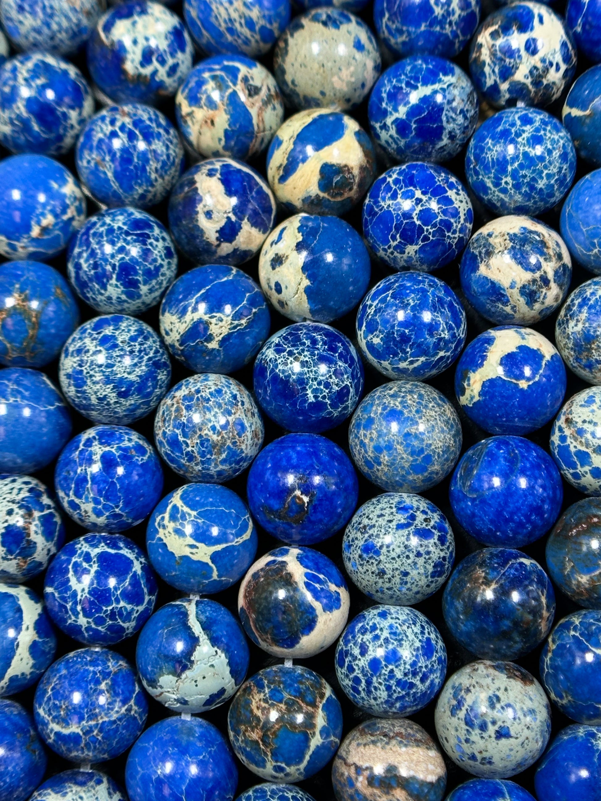 Natural Sea Sediment Jasper Gemstone Bead 8mm 10mm Round Beads, Beautiful Dark Royal Blue Color Imperial Jasper Beads Full Strand 15.5"