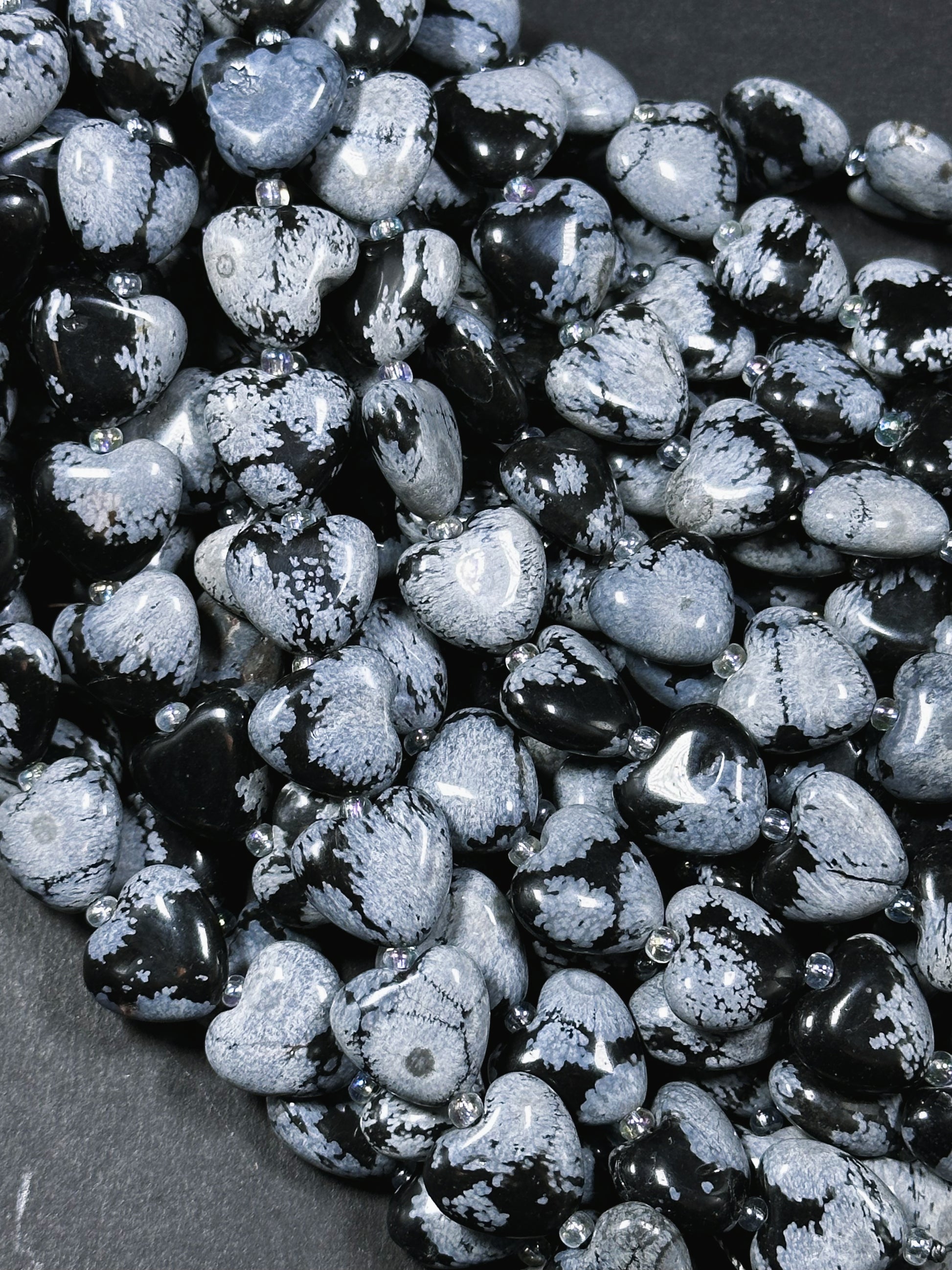 Natural Snowflake Jasper Gemstone Bead 14mm Heart Shape Bead, Beautiful Natural Gray Black Color Jasper Bead, Great Quality Full Strand 15.5