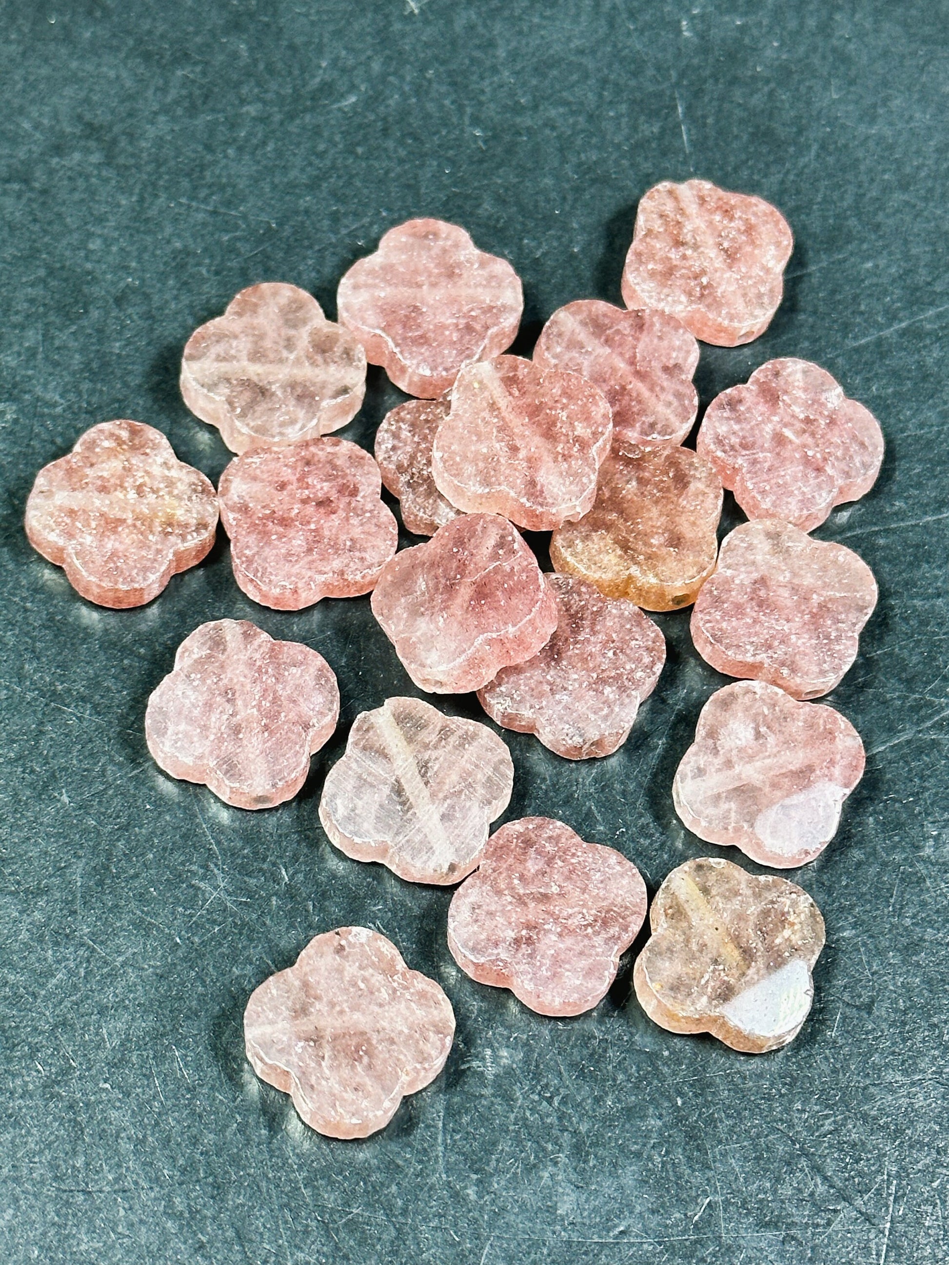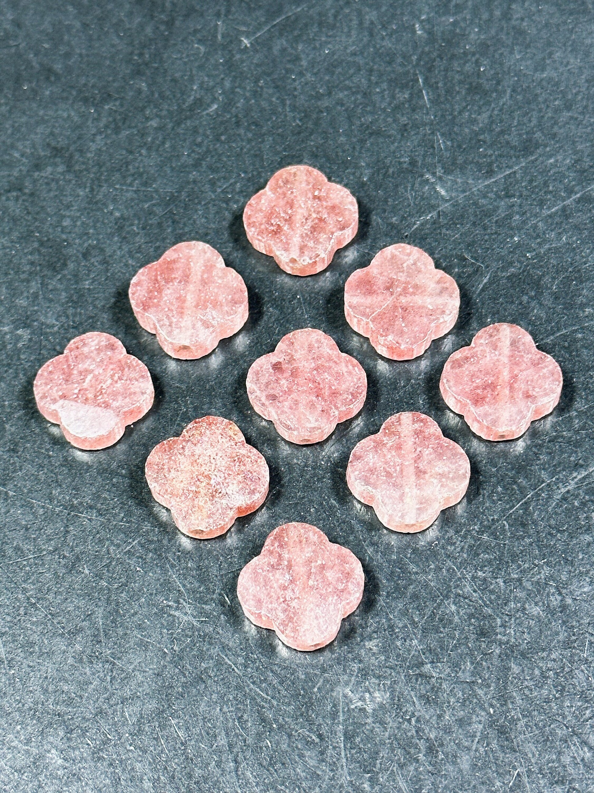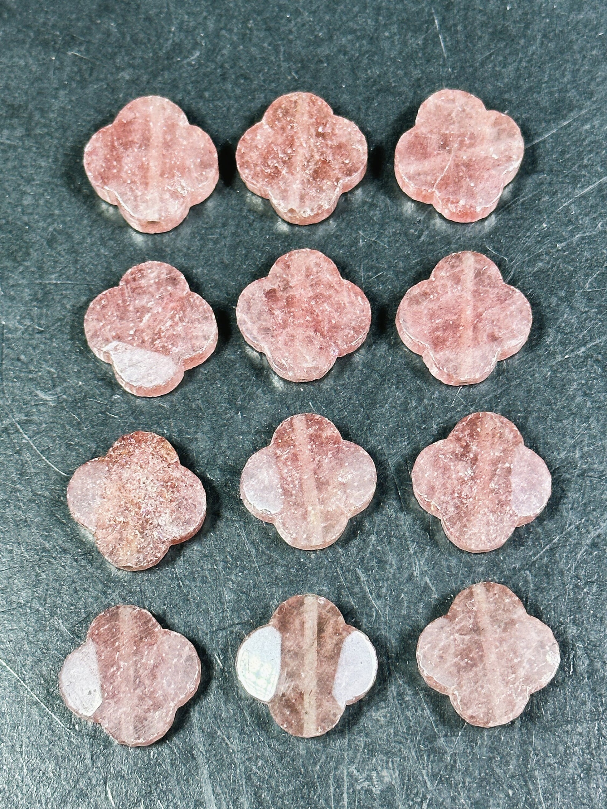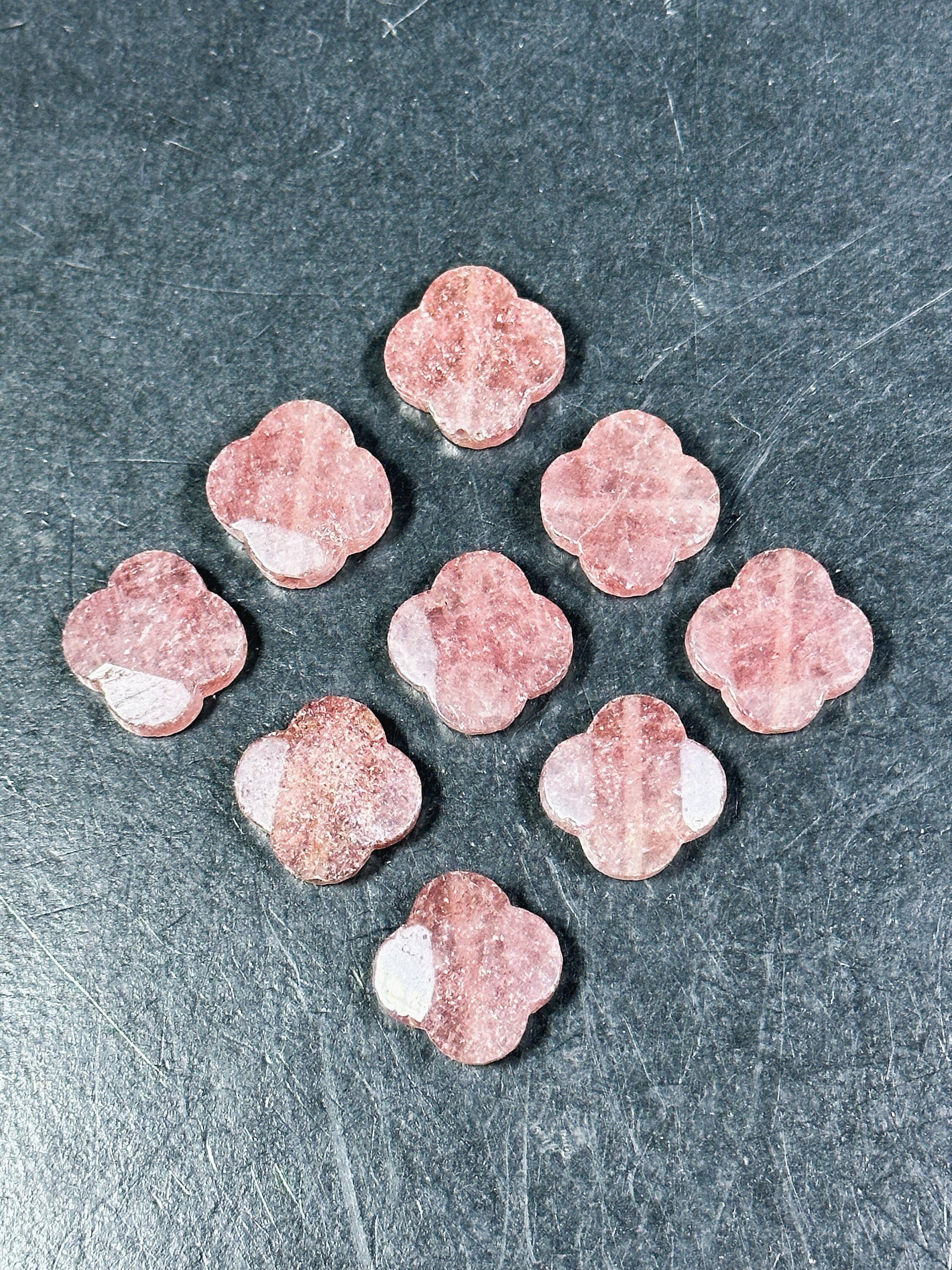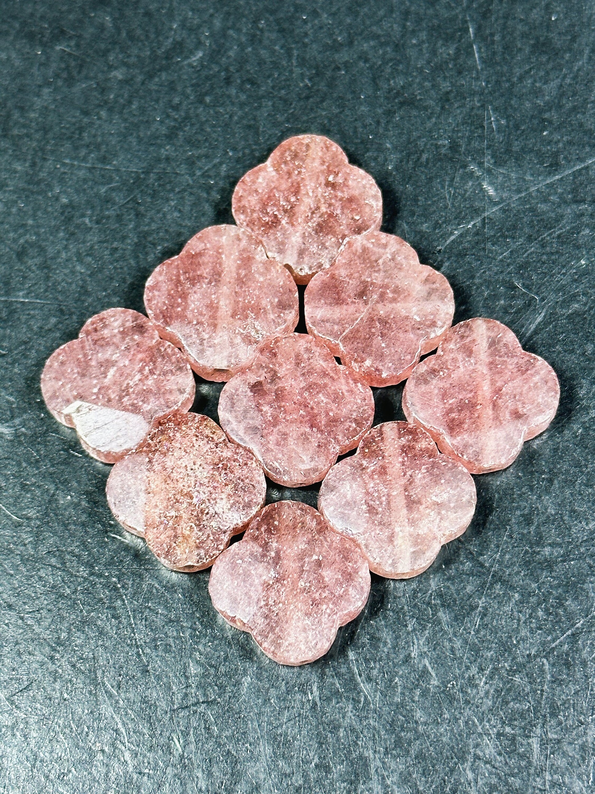 NATURAL Strawberry Quartz Gemstone Bead Faceted 16mm Clover Flower Shape Bead, Beautiful Red Pink Color Gemstone Beads, LOOSE Beads