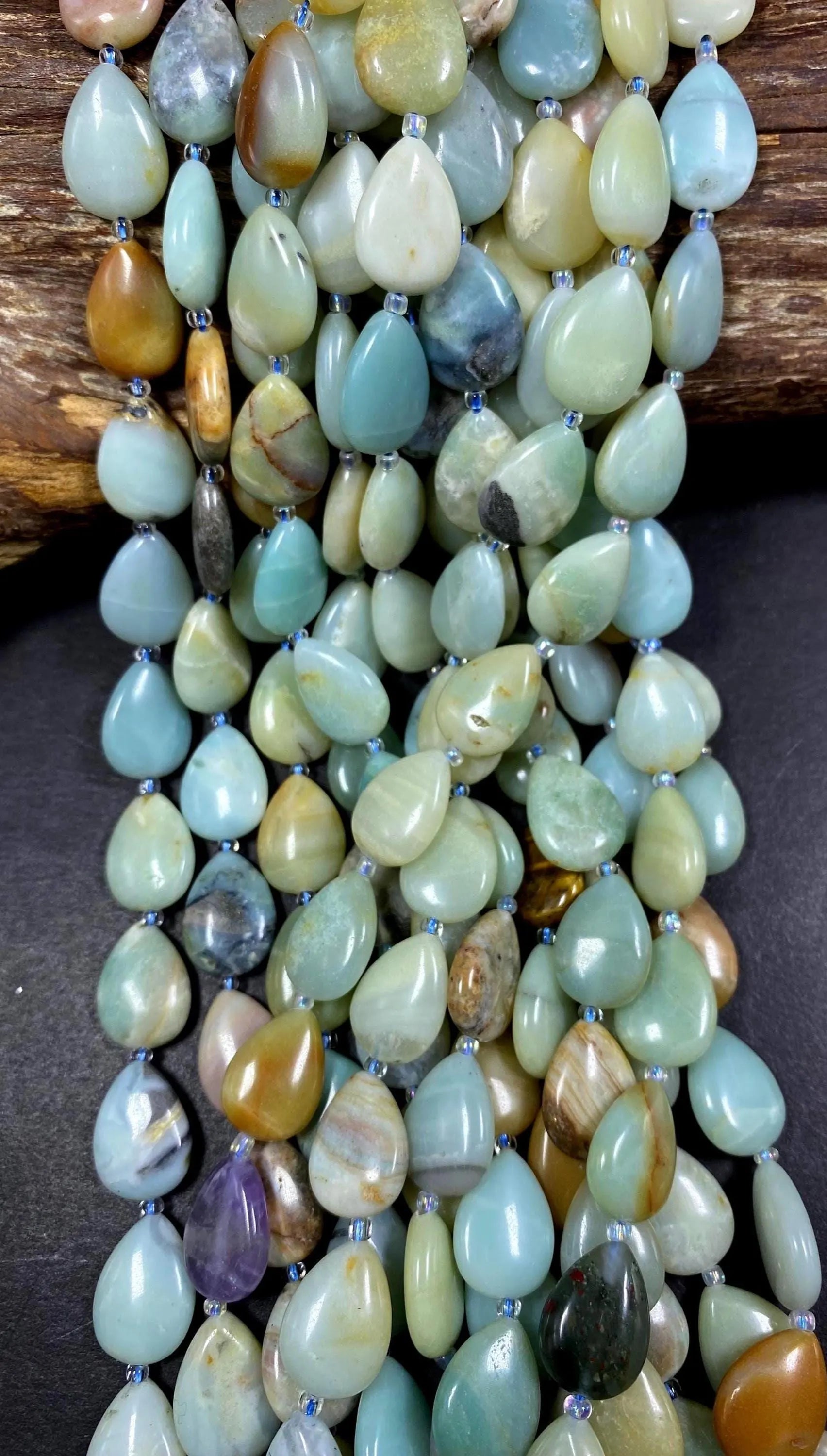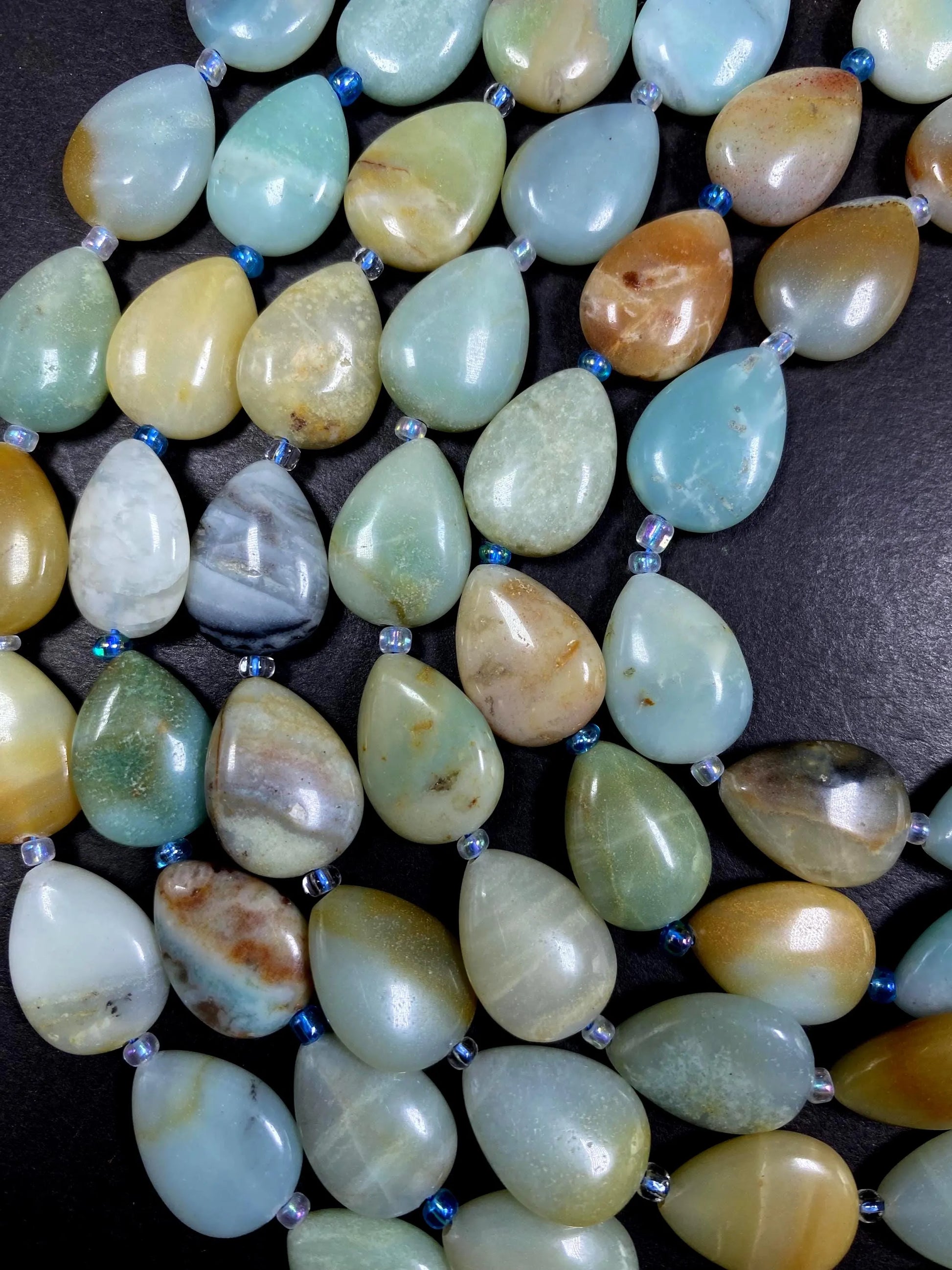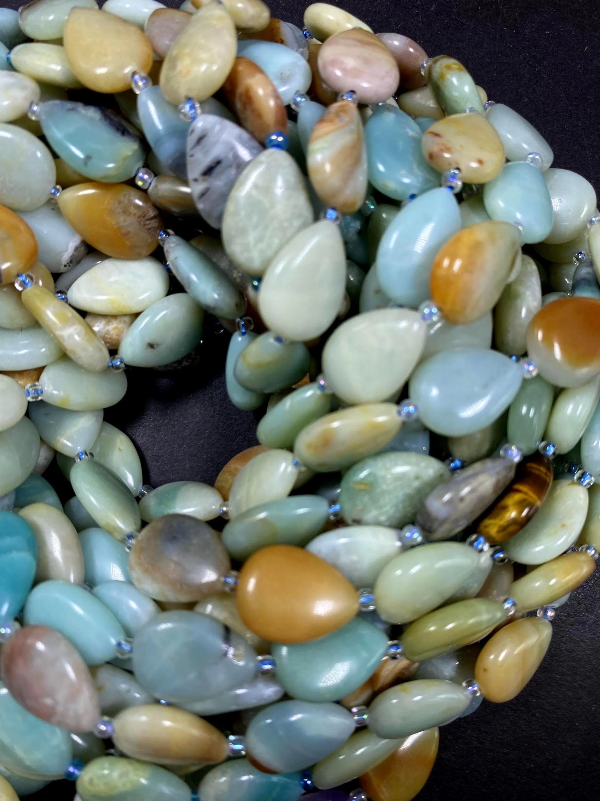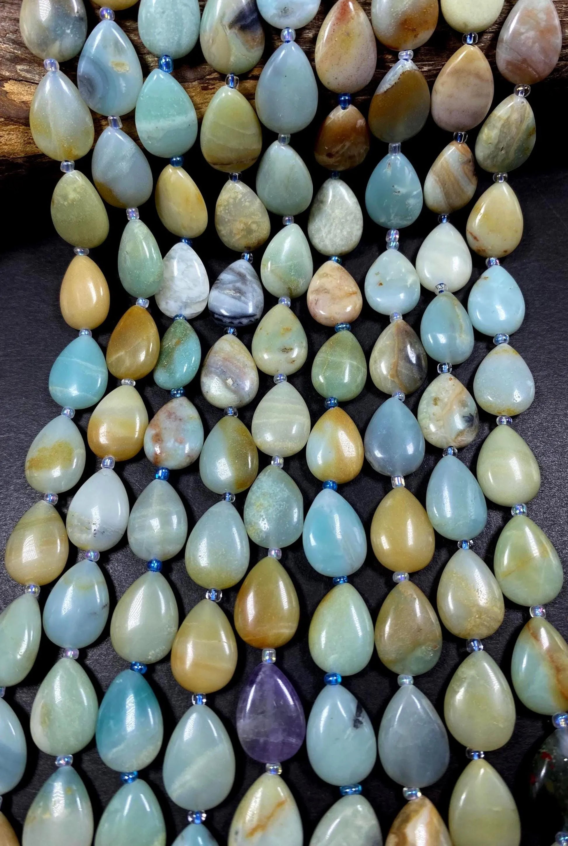 Guaranteed 100% natural gemstone. Stunning natural flower amazonite gemstones. Beautiful natural multicolor, blue-green, brown, color flower amazonite teardrop gemstone beads. Very unique and amazing quality. Loose beads great for jewelry making and beading!