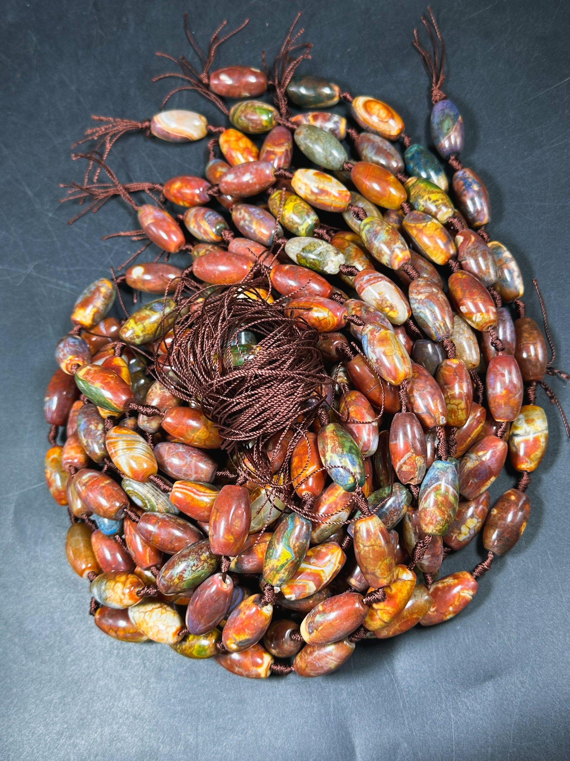 NATURAL Tibetan Agate Gemstone Bead 24x13mm Barrel Shape, Gorgeous Multicolor Orange Brown Color Tibetan Gemstone Bead Excellent Quality