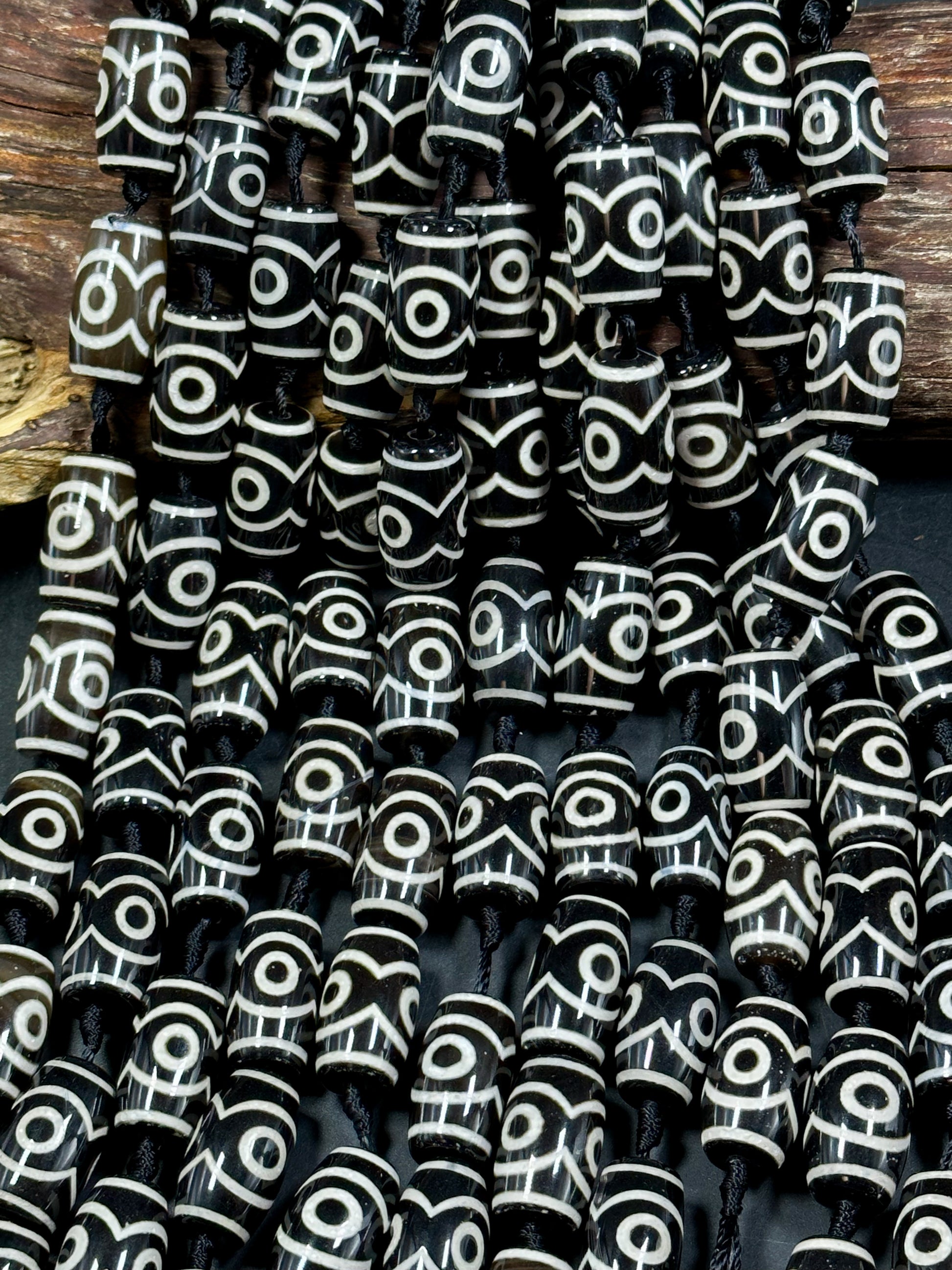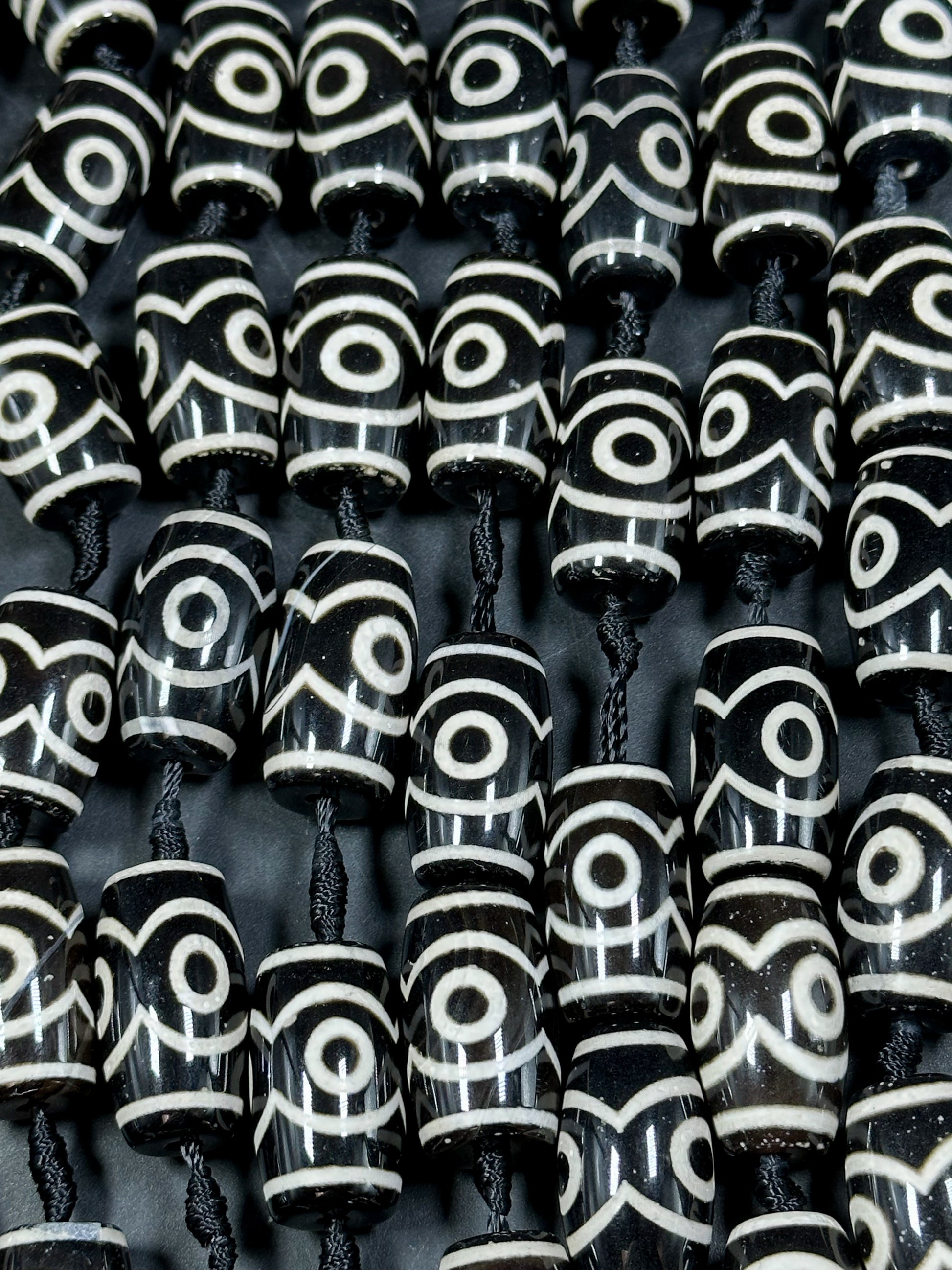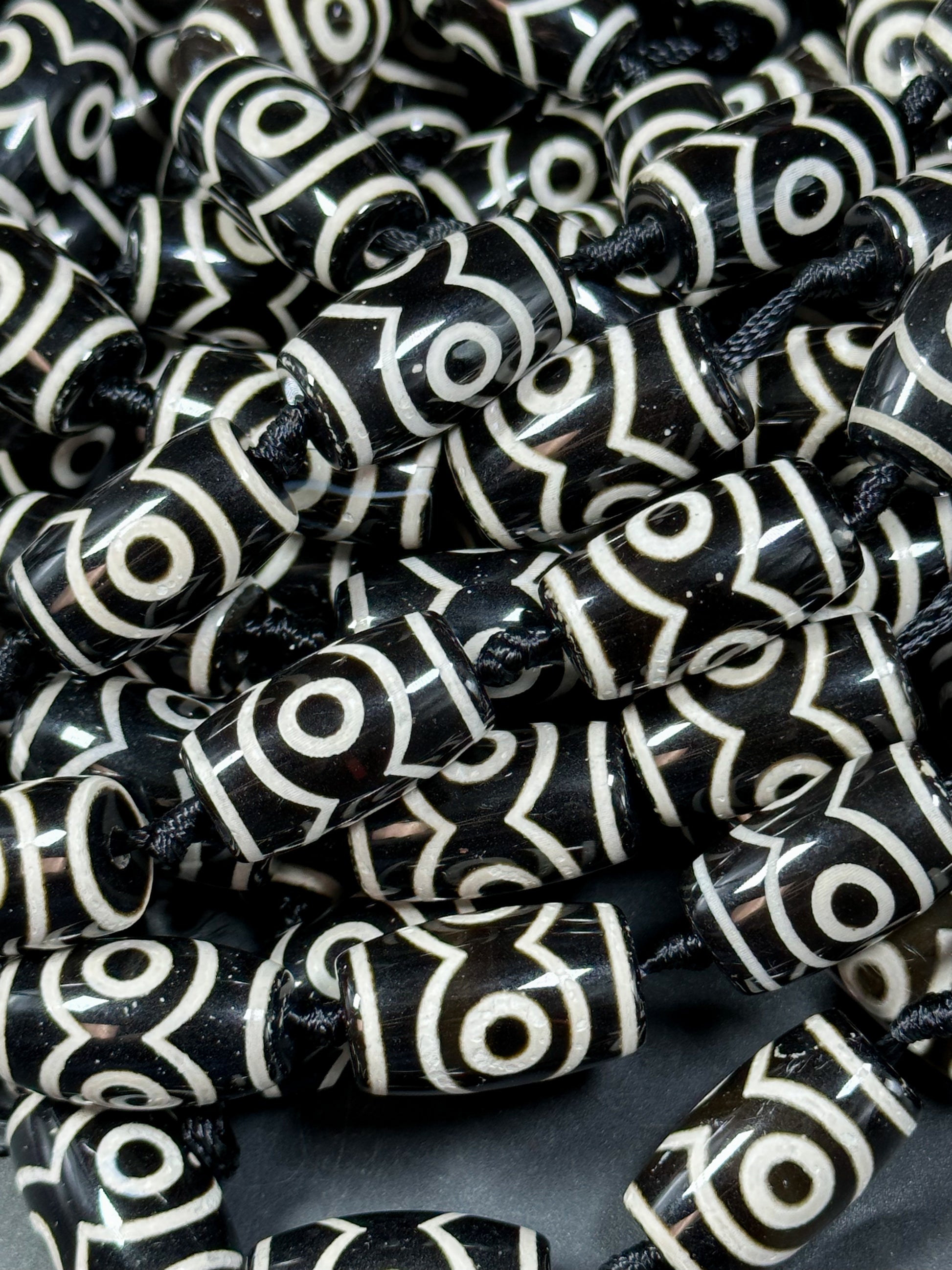Natural Tibetan Gemstone Bead 24x14mm Barrel Shape Bead, Beautiful Black White Color Hand Painted Design Tibetan Gemstone Bead Great Quality