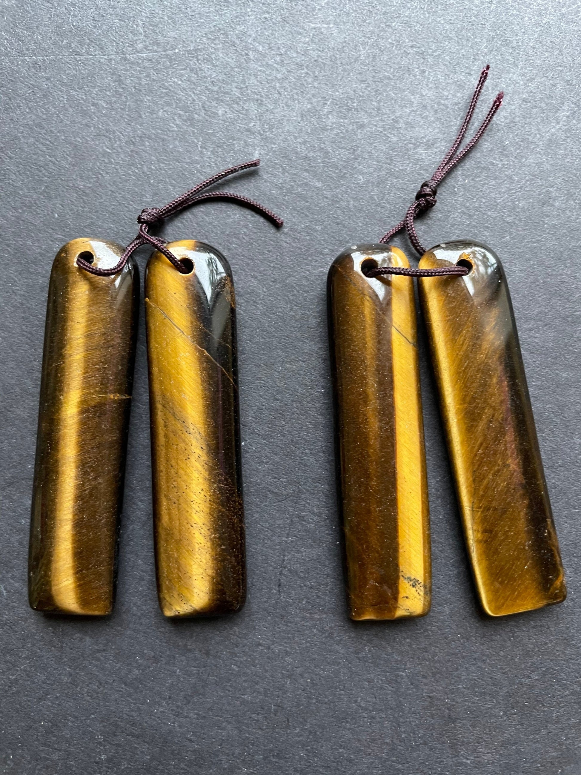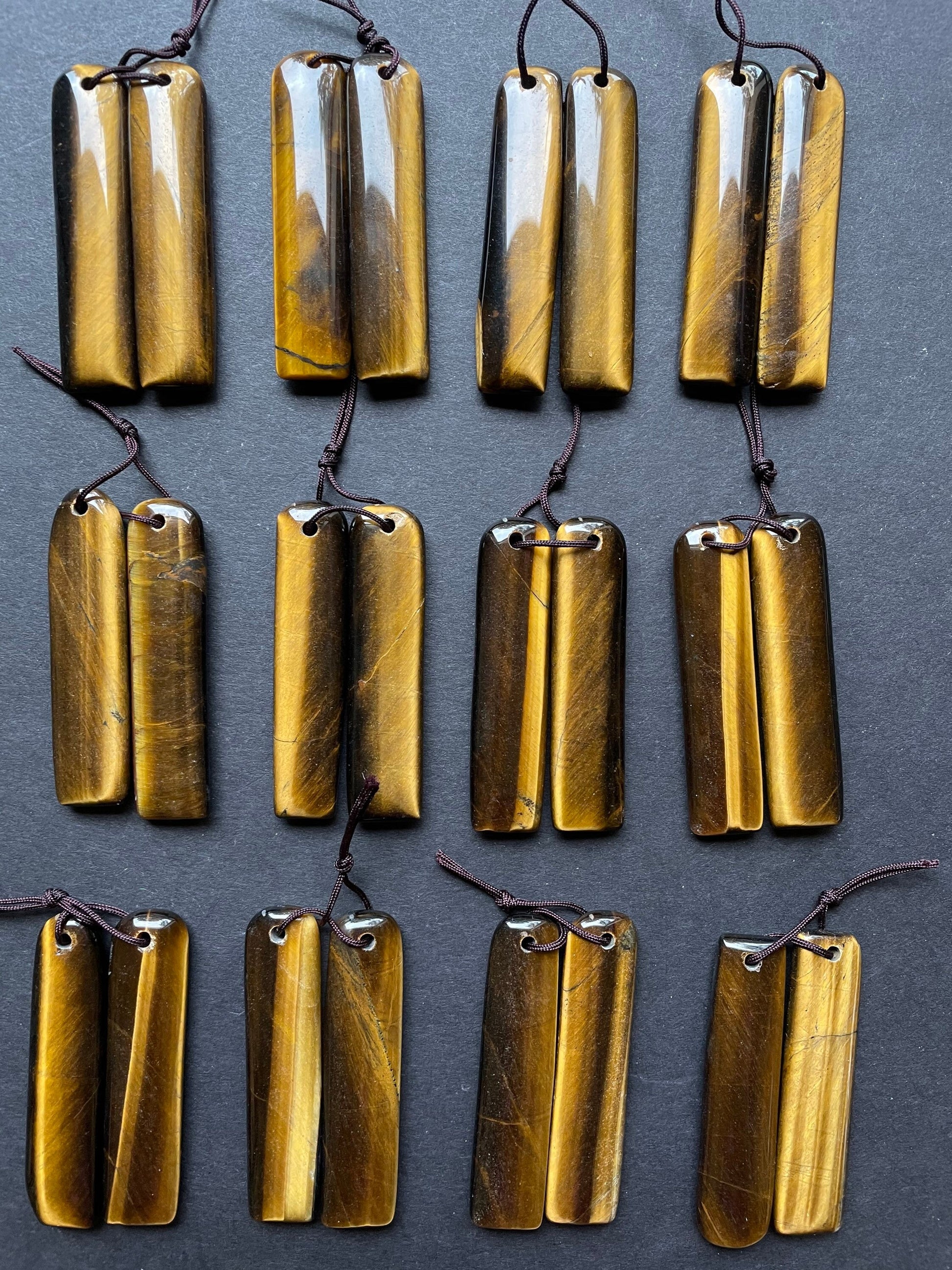 Natural Tiger Eye Gemstone Earrings, Beautiful Natural Tiger Eye Gemstone Earrings, 12x40mm Rectangle Shape Earrings
