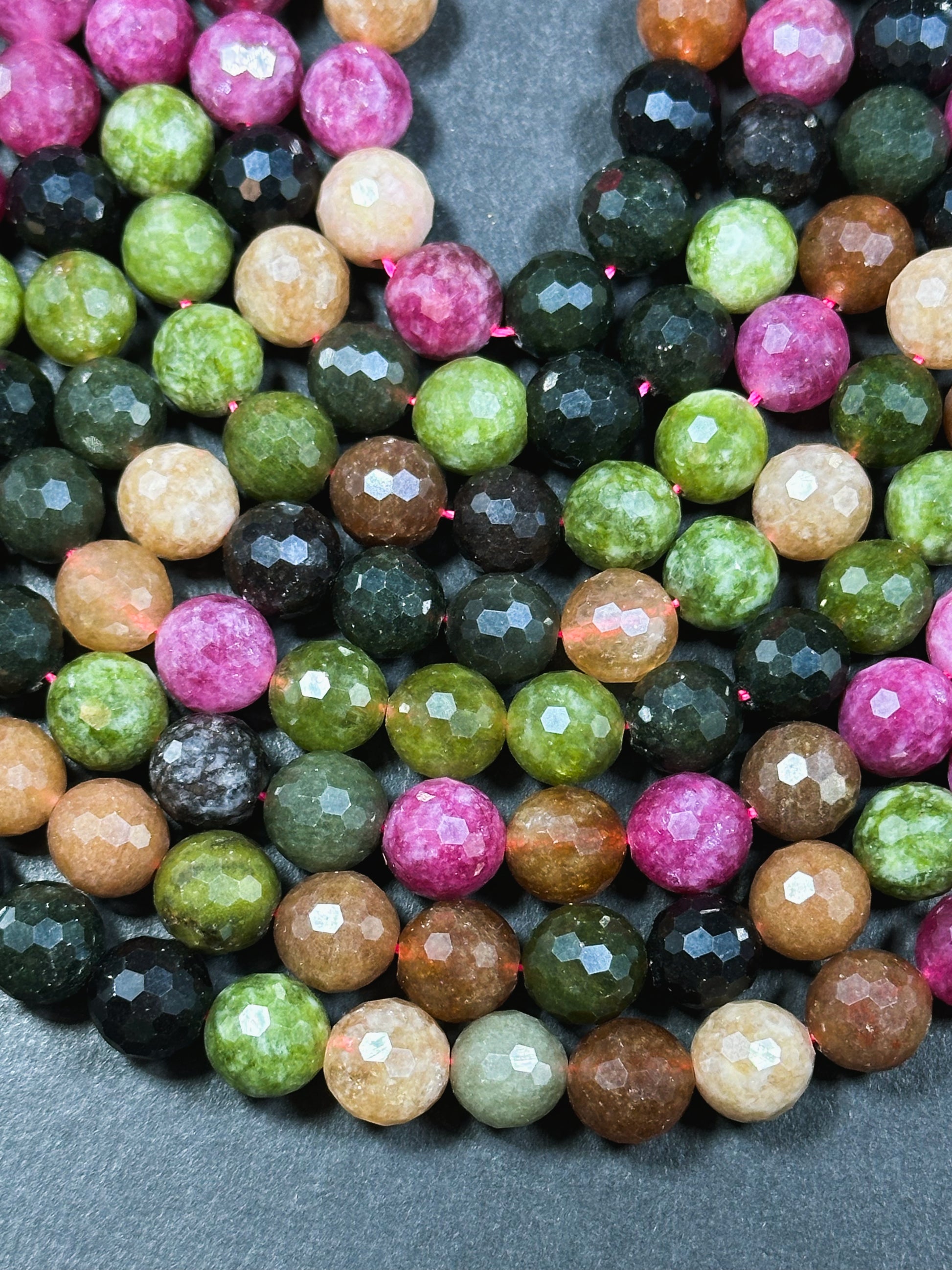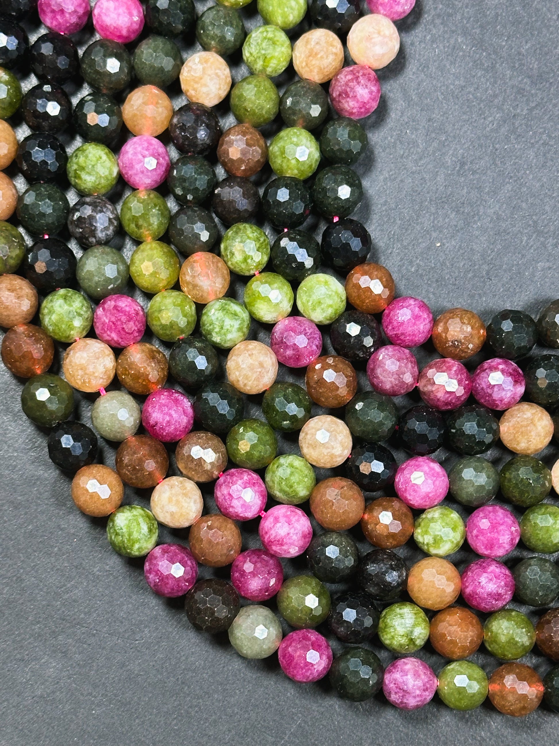 Natural Tourmaline Quartz Gemstone Bead Faceted 8mm 10mm Round Beads, Beautiful Multicolor Tourmaline Quartz Stone Beads, Full Strand 15.5"