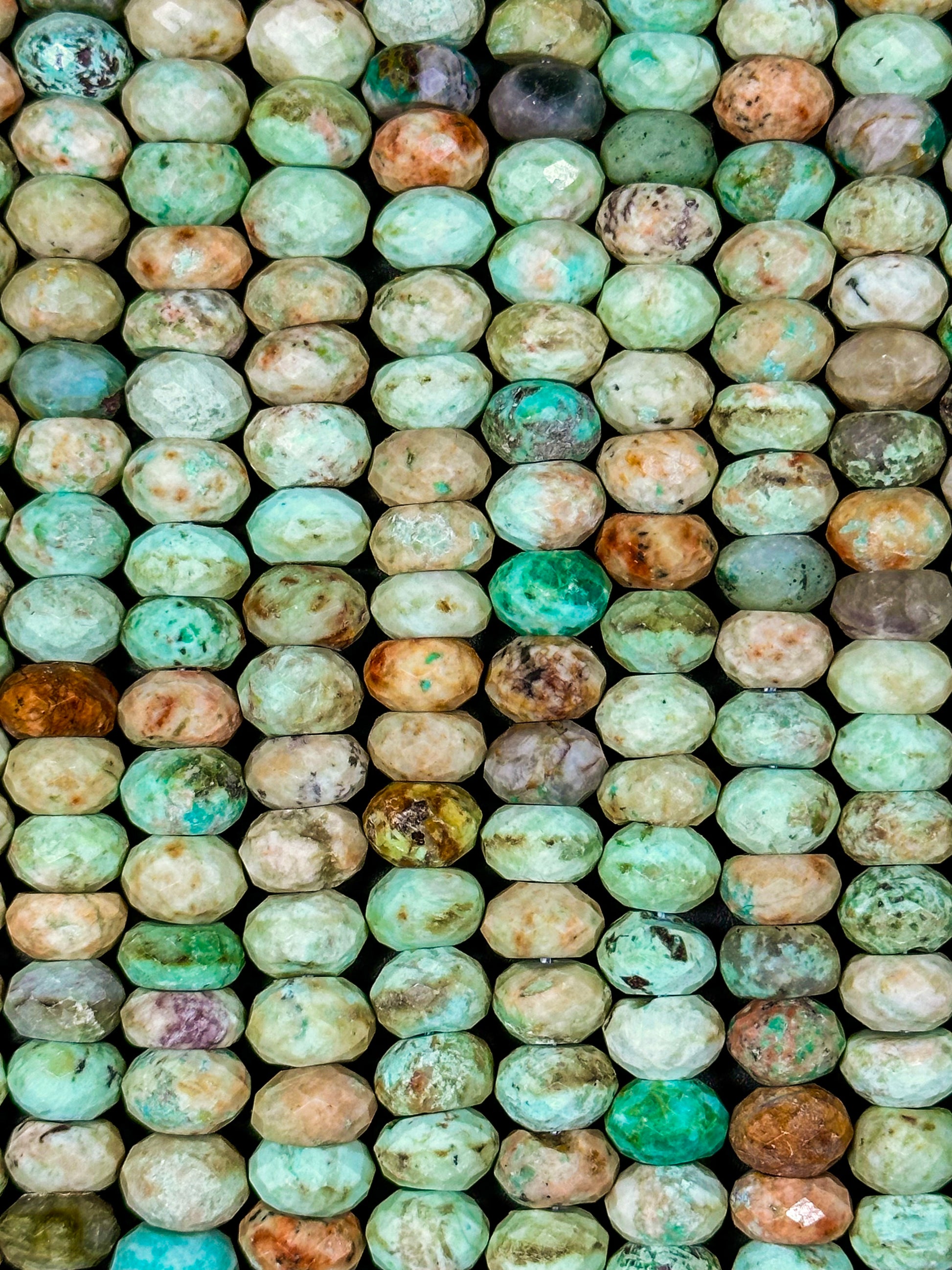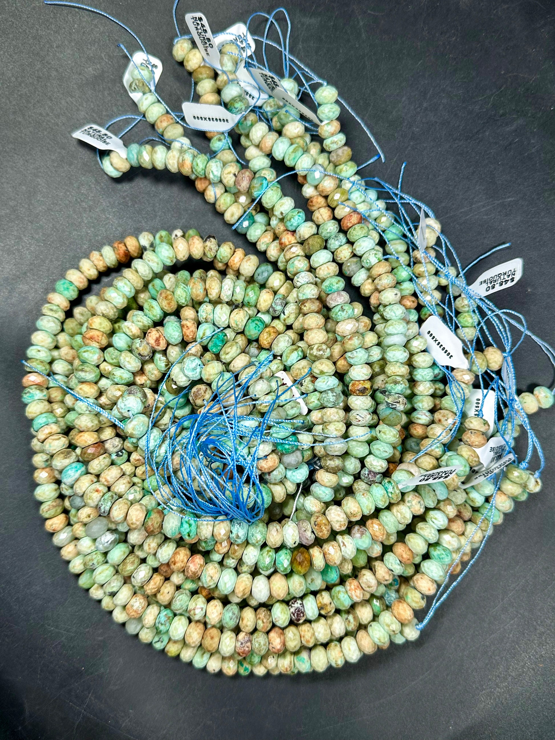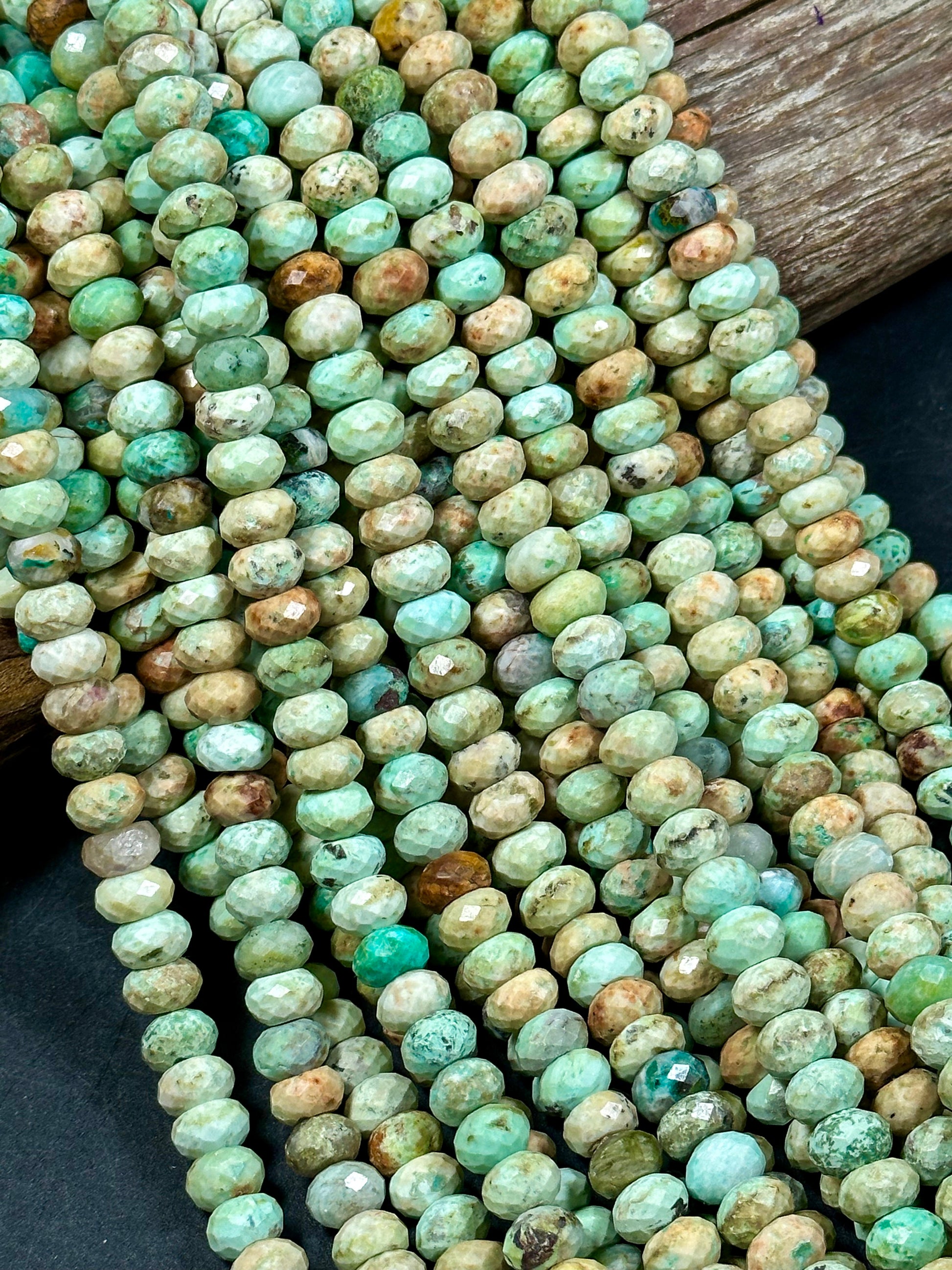 NATURAL Turquoise Gemstone Bead Faceted 9x6mm Rondelle Shape, Gorgeous Green Blue Orange Color Turquoise Gemstone Bead, Great Quality 15.5"