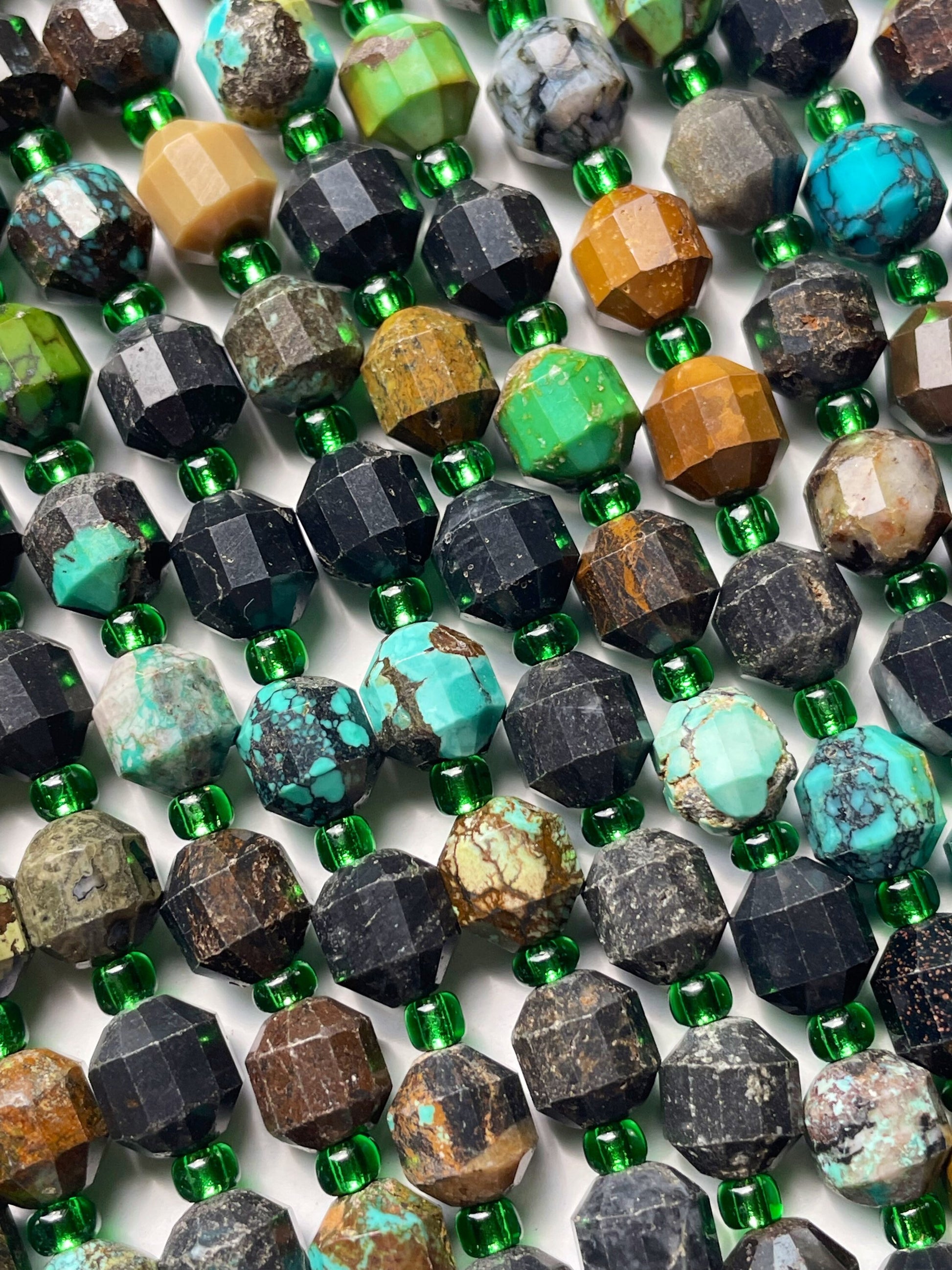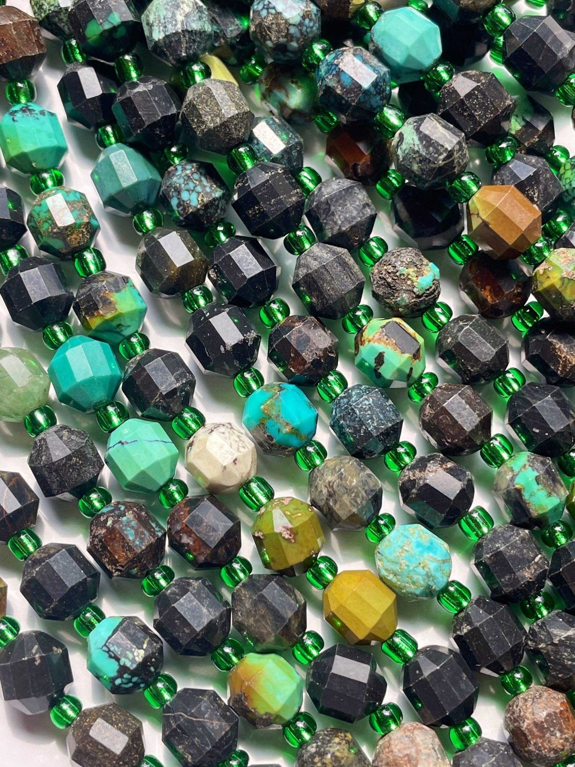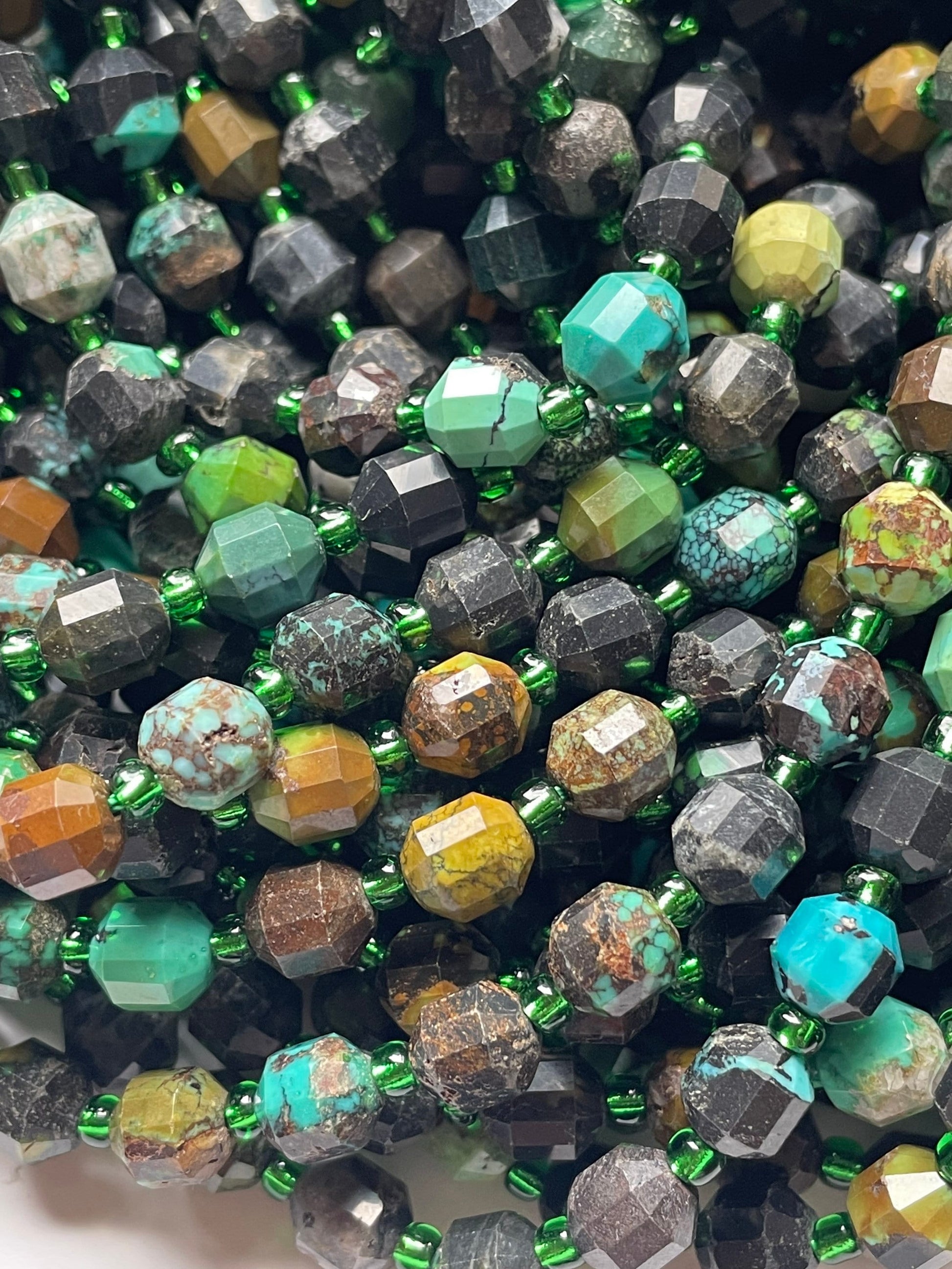 Beautiful Natural turquoise stone bead. 6mm Faceted diamond cut shape bead. Beautiful natural blue turquoise with brown color turquoise. Full strand length . Real nice looking turquoise bead!