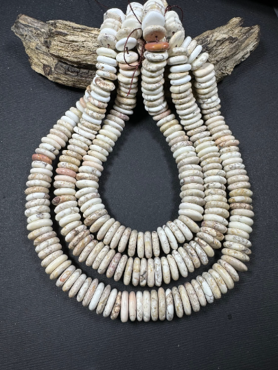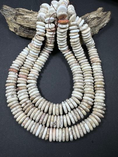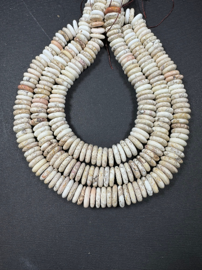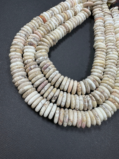 Natural White Turquoise Gemstone Bead 13-15mm Graduated/Rondelle Shape, Beautiful Natural Beige White Color Turquoise, Excellent Quality Full Strand 15.5"