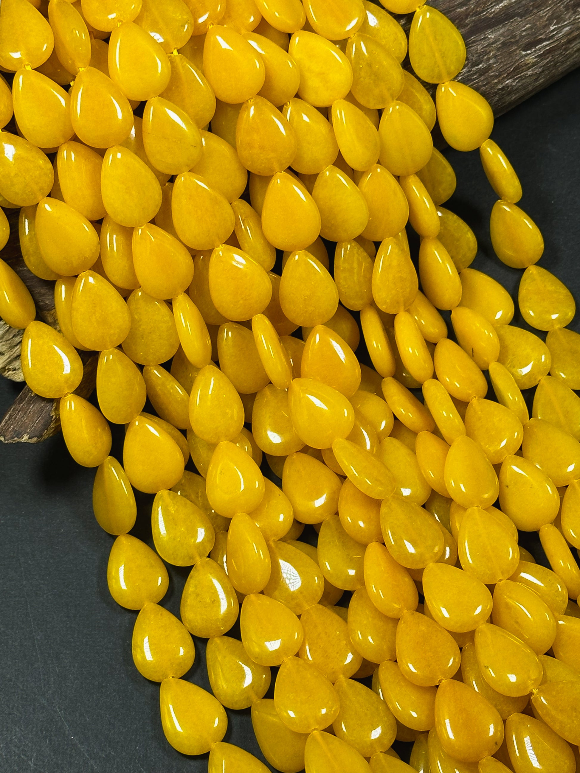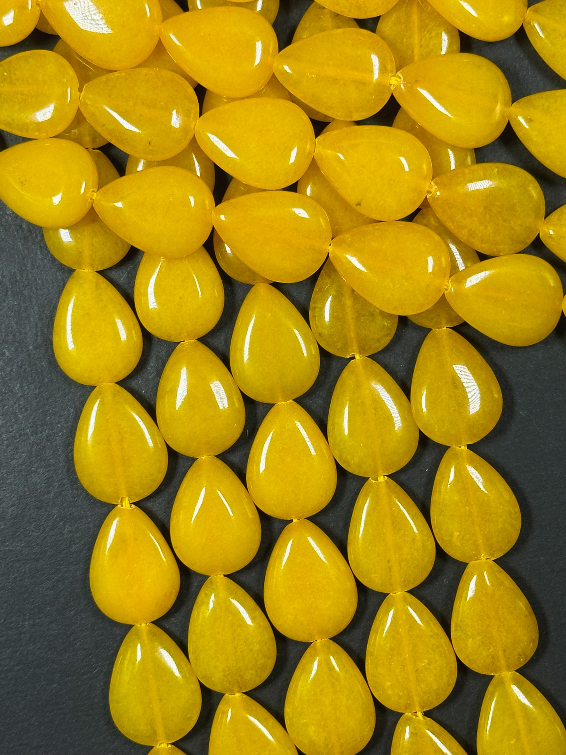 Natural Yellow Jade Gemstone Bead 20x15mm Teardrop Shape, Beautiful Yellow Color Jade Gemstone Beads, Excellent Quality Full Strand 15.5"