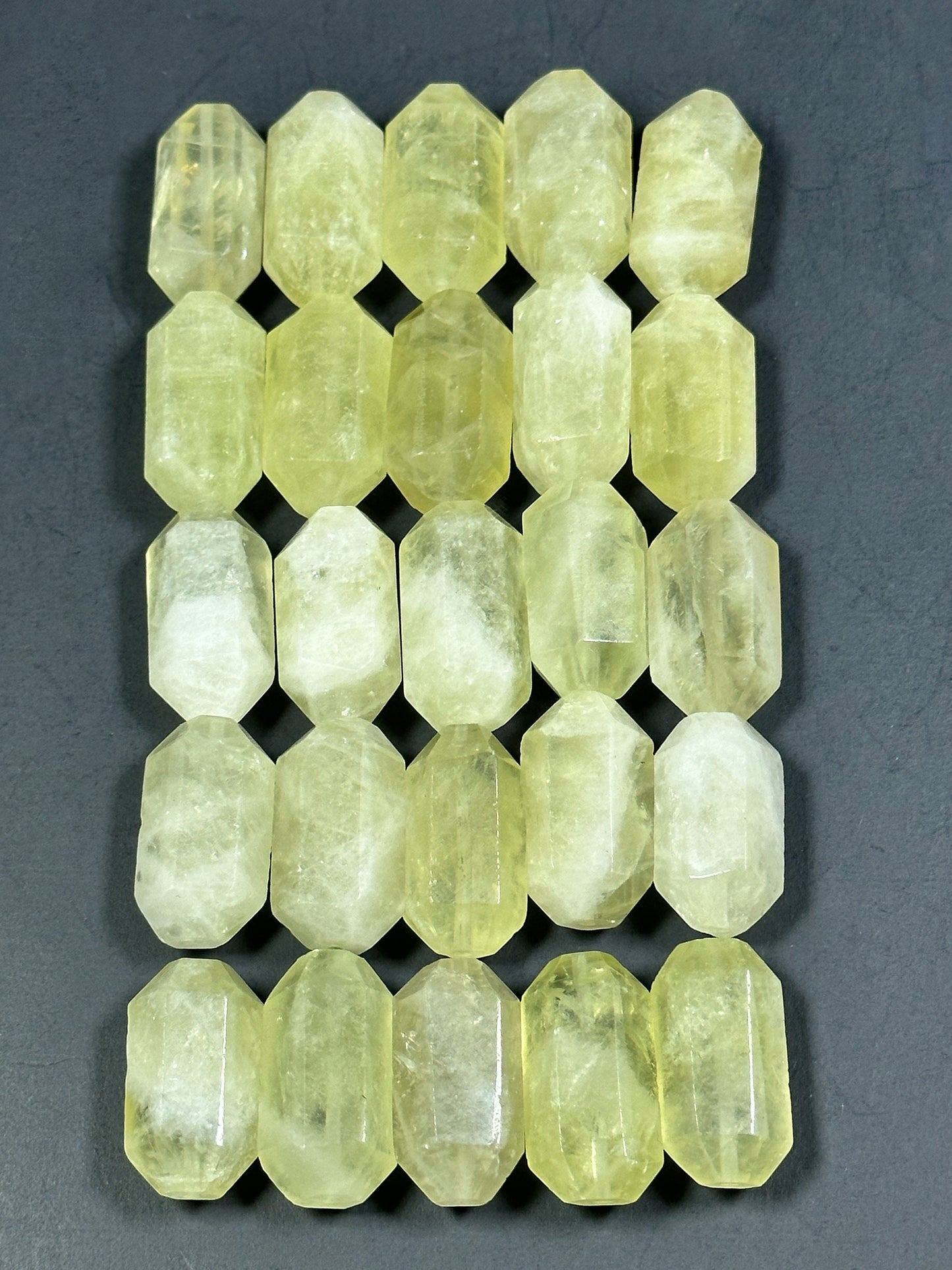 NATURAL Yellow Quartz Gemstone Bead Faceted 25x12mm Barrel Shape Bead, Gorgeous Clear Light Yellow White Color Quartz Loose Beads