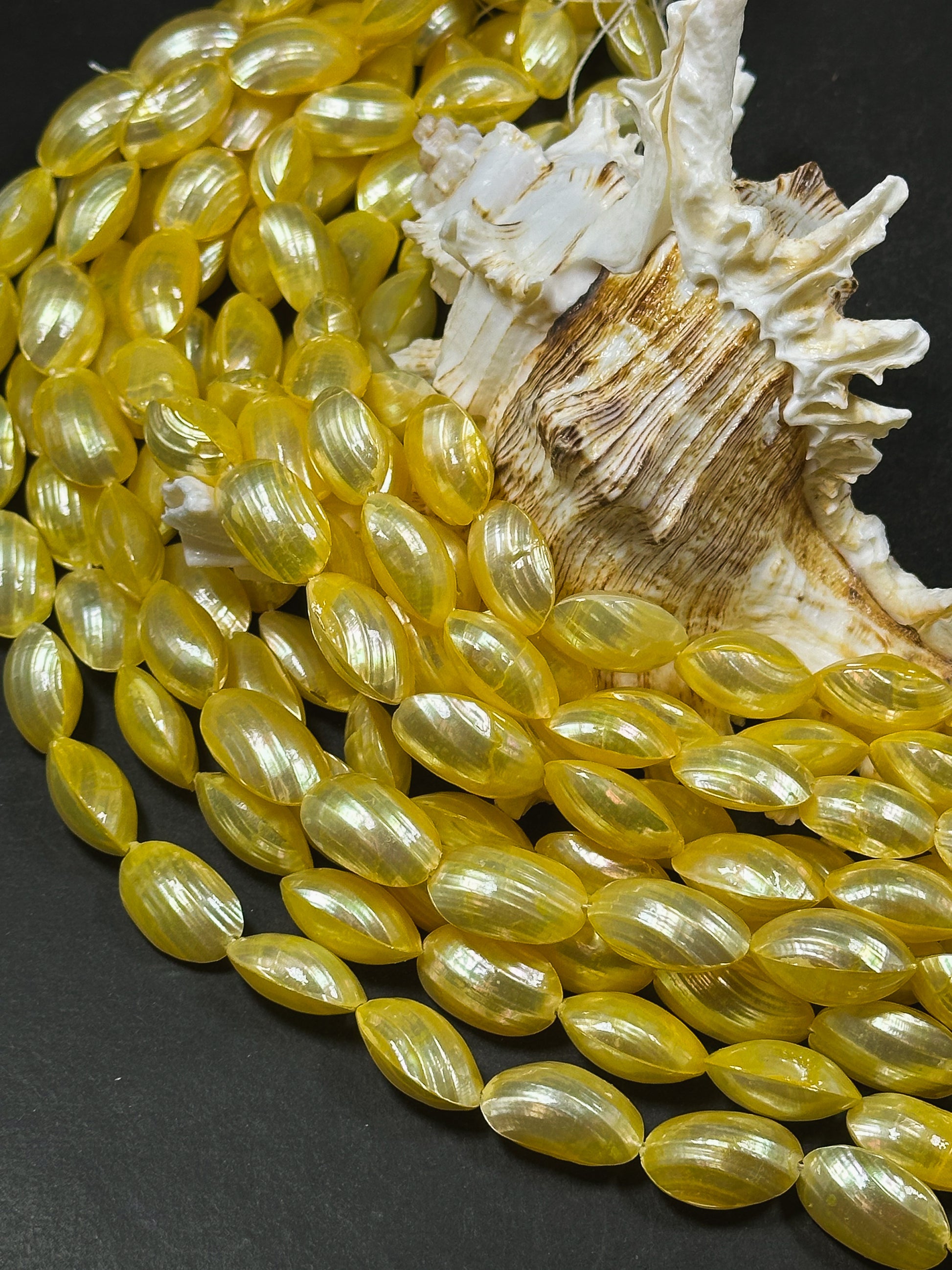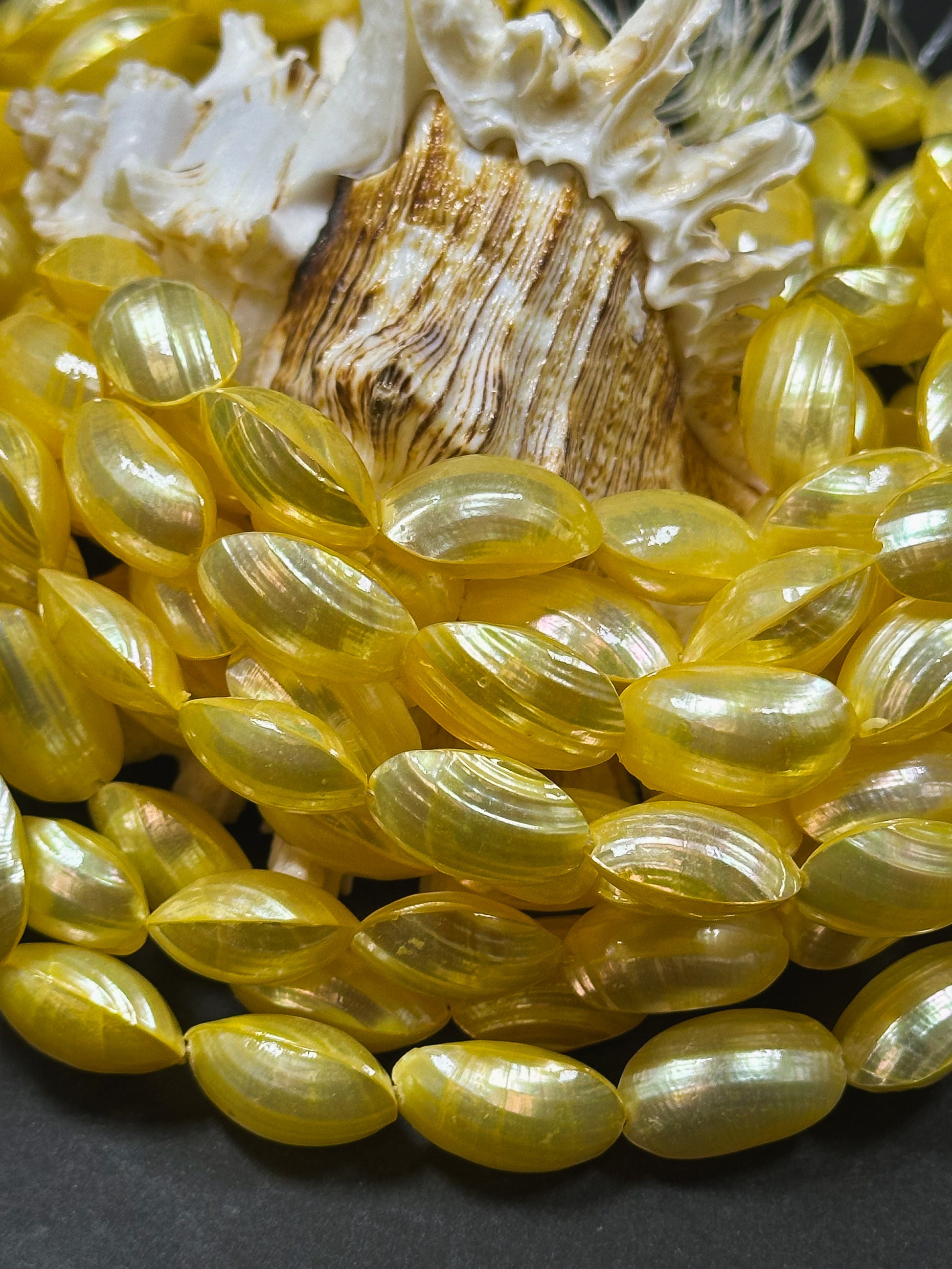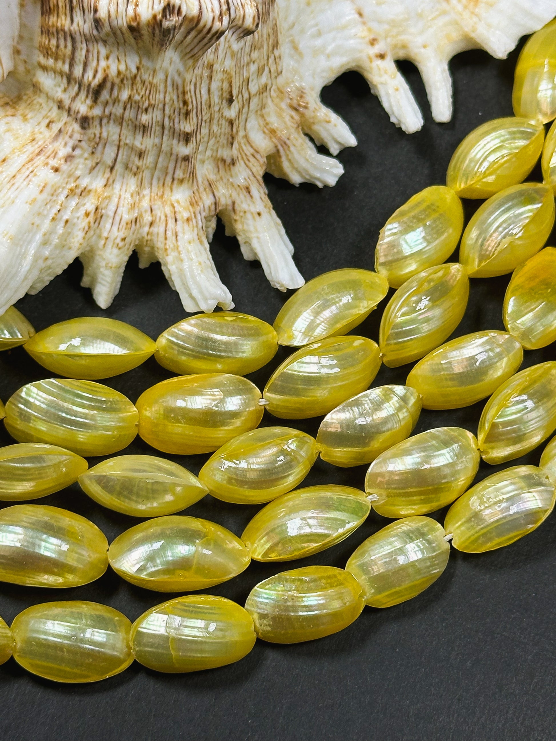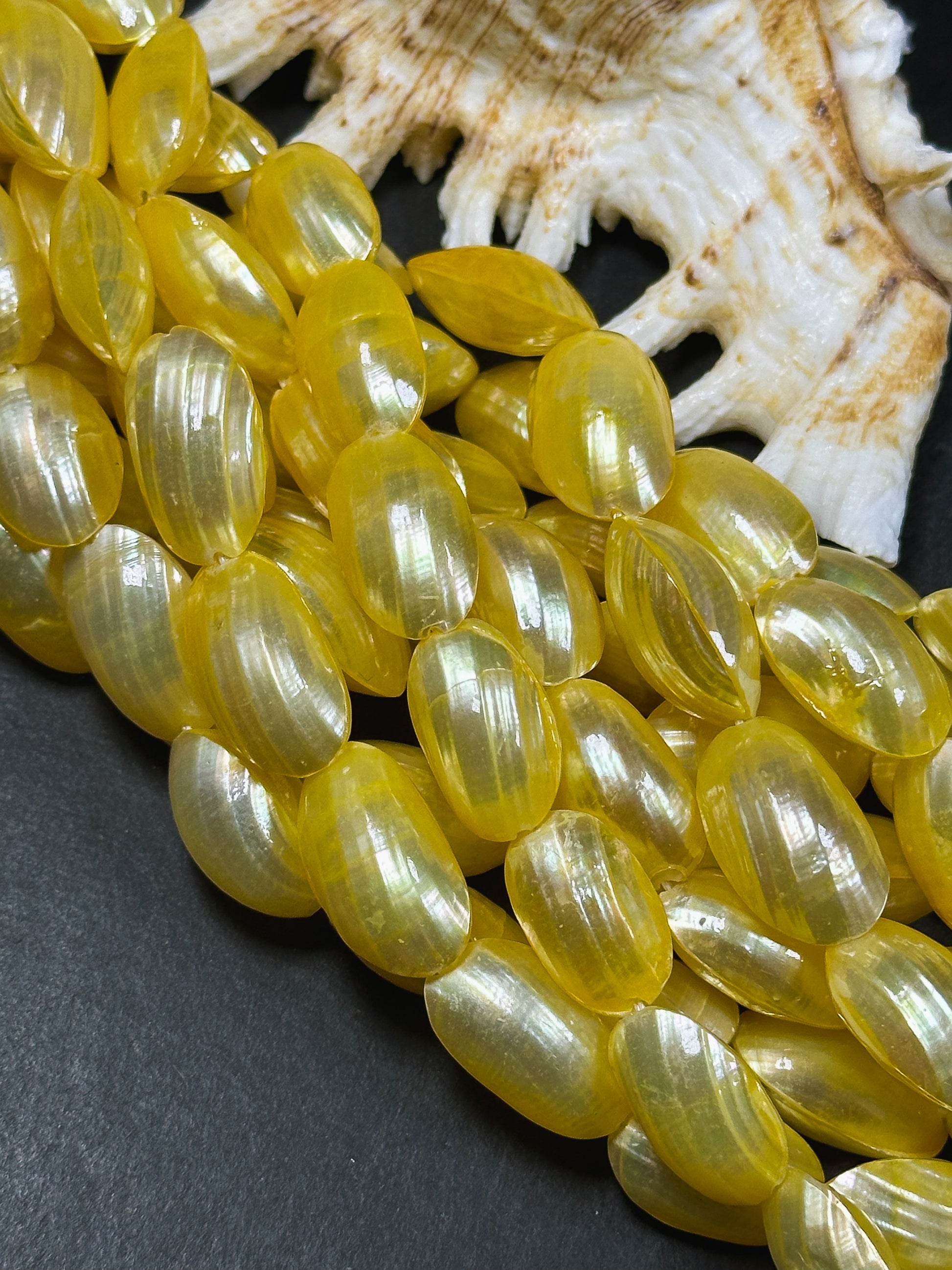 Natural Yellow Sea Shell Beads, Natural 16x8mm Sea Shell Oval Shape Beads, Gorgeous Yellow Color Sea Shell Beads, 15.5" Strand