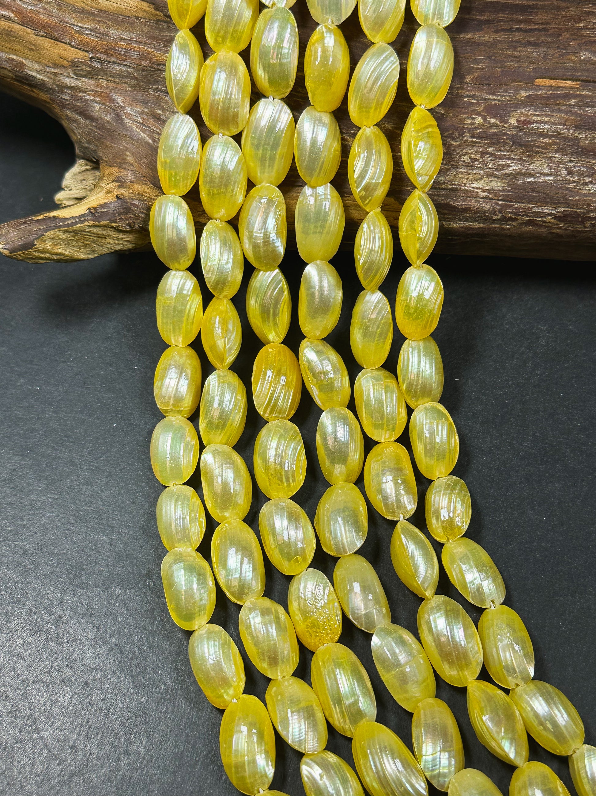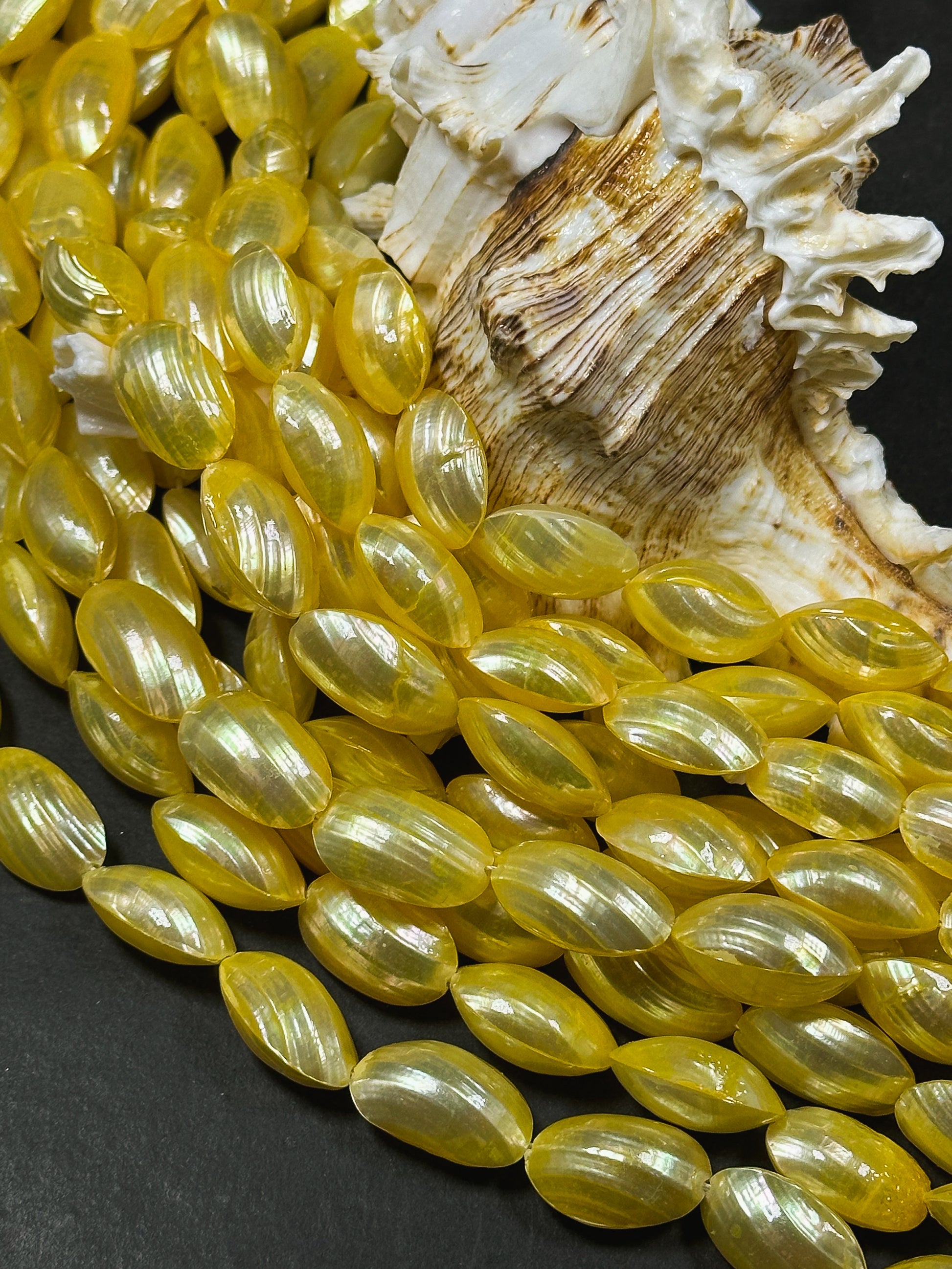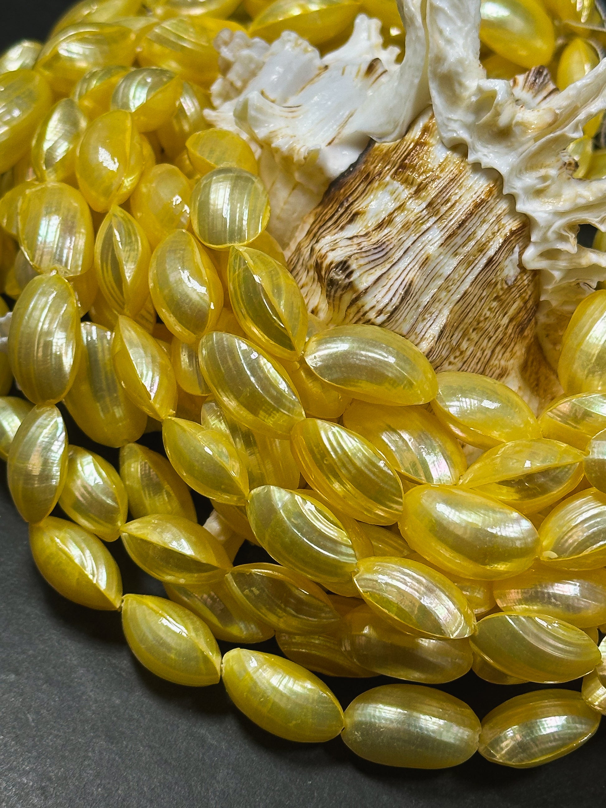 Natural Yellow Sea Shell Beads, Natural 16x8mm Sea Shell Oval Shape Beads, Gorgeous Yellow Color Sea Shell Beads, 15.5" Strand