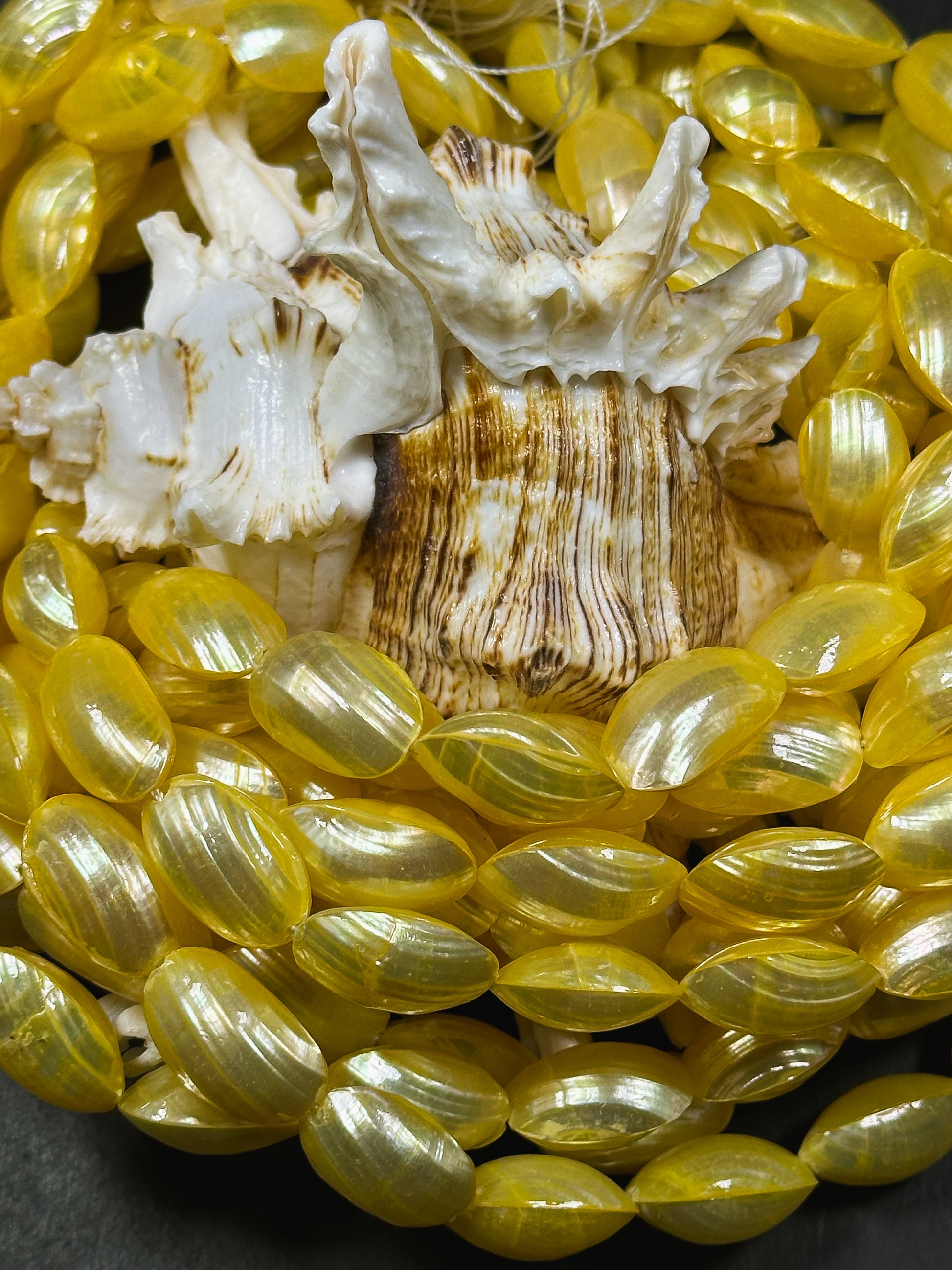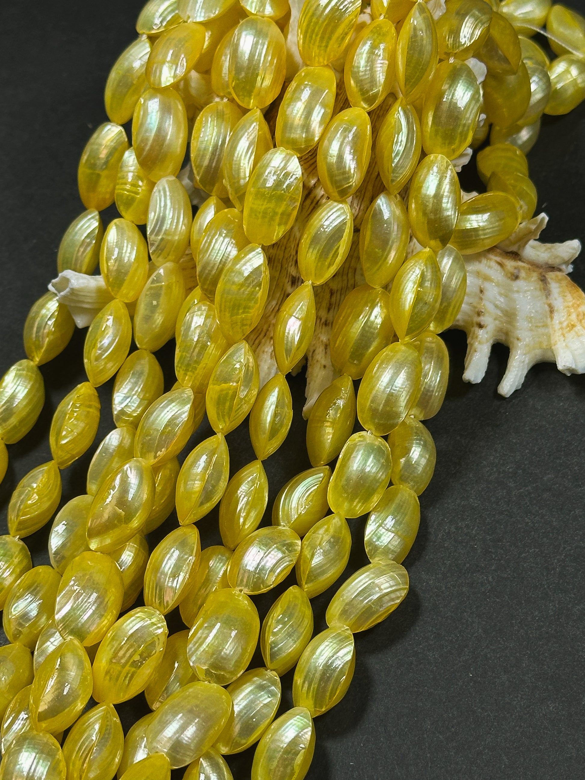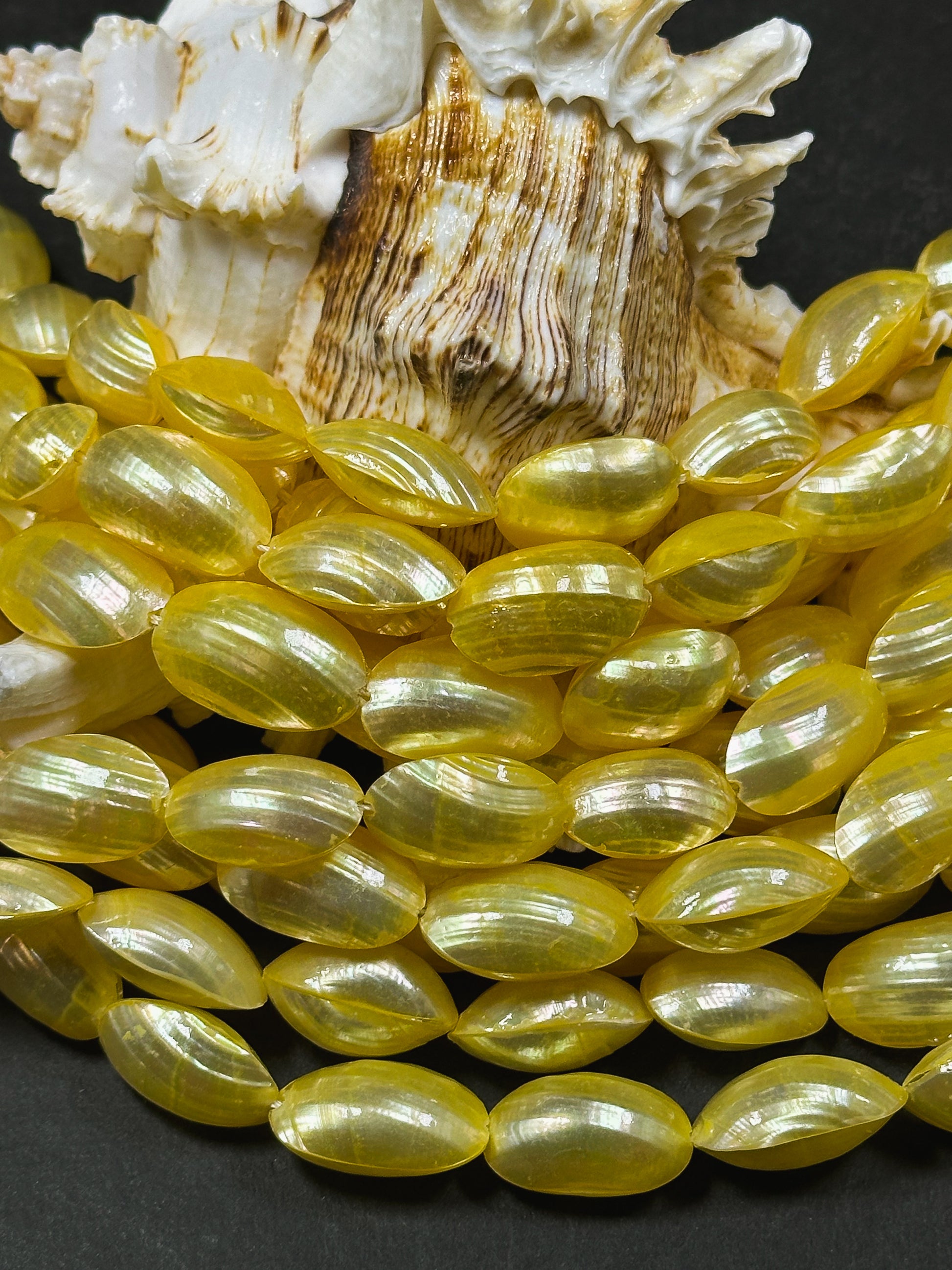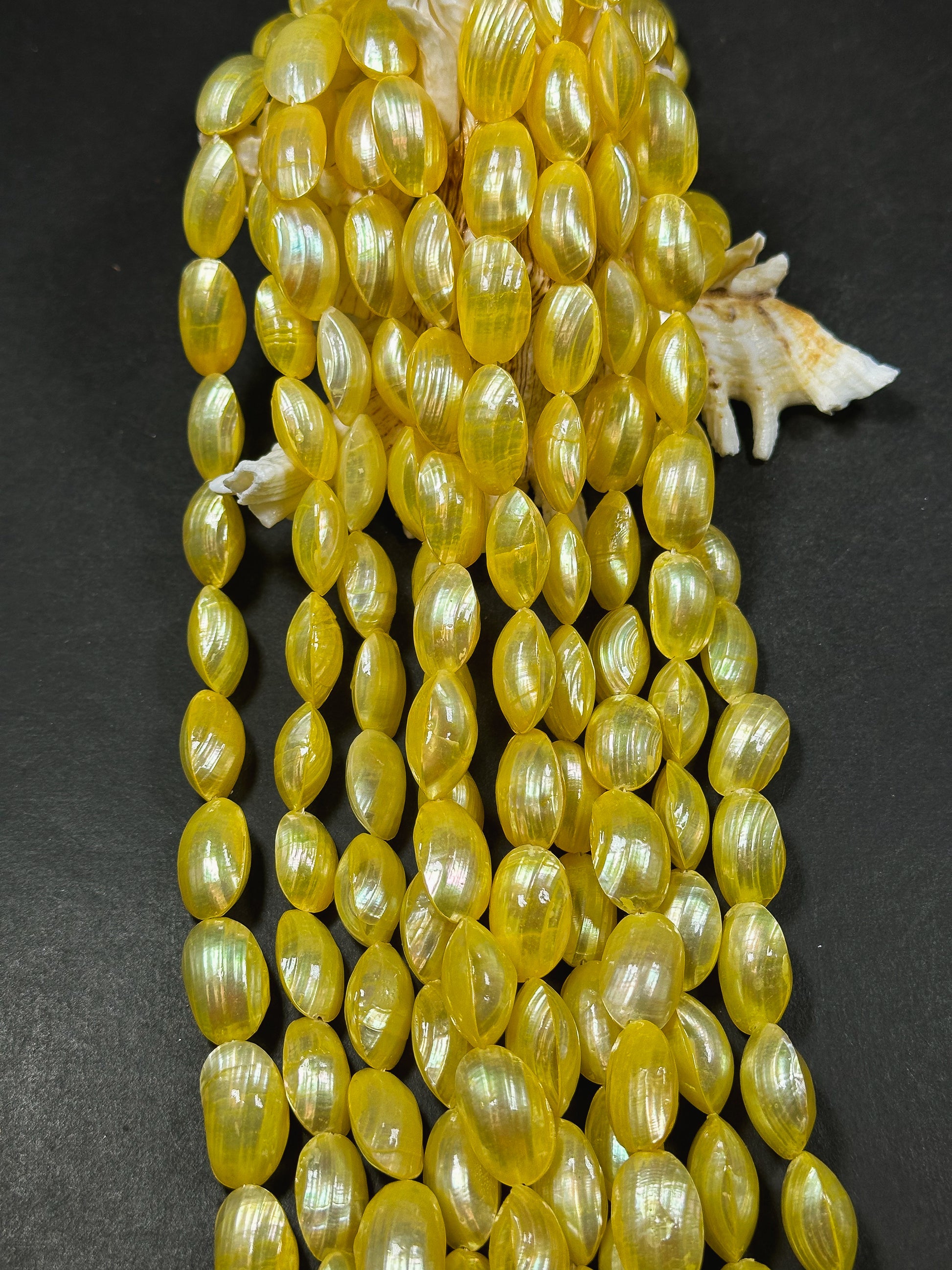 Natural Yellow Sea Shell Beads, Natural 16x8mm Sea Shell Oval Shape Beads, Gorgeous Yellow Color Sea Shell Beads, 15.5" Strand